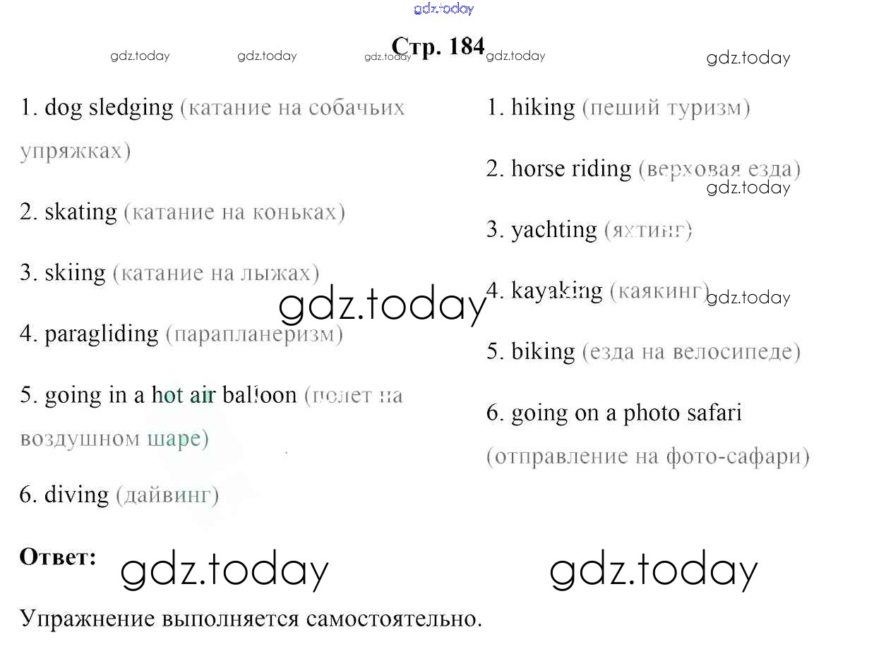 На страницах сайта gdz.today вы найдете учебный и вспомогательный материал, направленный на улучшения знаний школьной программы. ГДЗ - онлайн мир знаний Страницы (решение) 184 Учебнику по Английскому языку для 9 класса Лапицкая, Демченко Высшая школа 2018