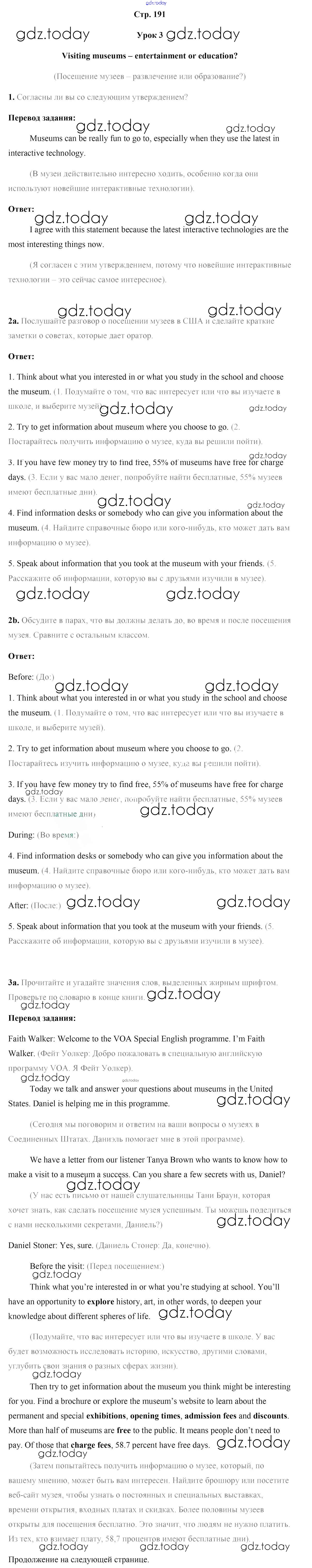 На страницах сайта gdz.today вы найдете учебный и вспомогательный материал, направленный на улучшения знаний школьной программы. ГДЗ - онлайн мир знаний Страницы (решение) 191 Учебнику по Английскому языку для 9 класса Лапицкая, Демченко Высшая школа 2018