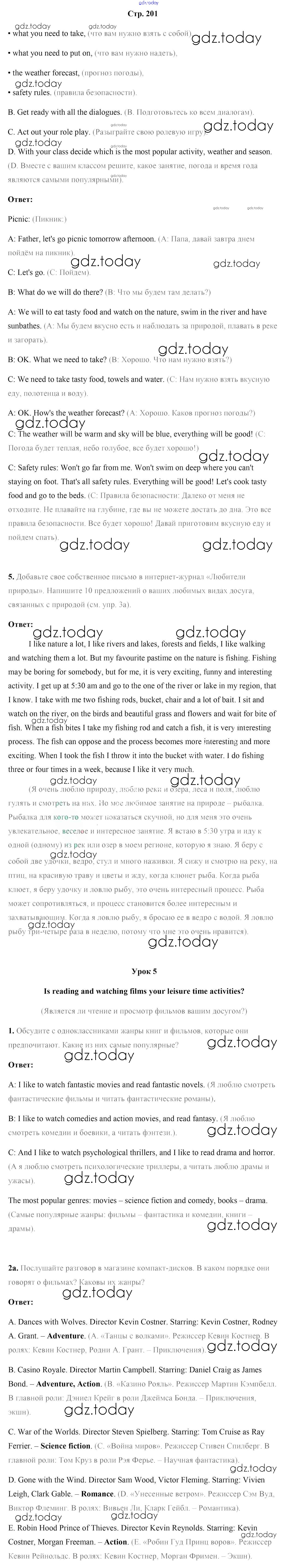На страницах сайта gdz.today вы найдете учебный и вспомогательный материал, направленный на улучшения знаний школьной программы. ГДЗ - онлайн мир знаний Страницы (решение) 201 Учебнику по Английскому языку для 9 класса Лапицкая, Демченко Высшая школа 2018