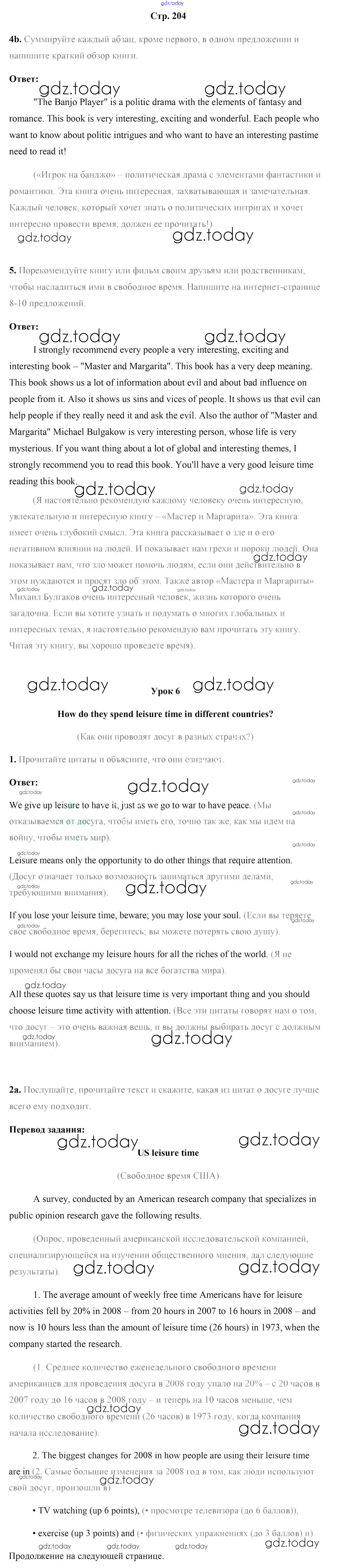 На страницах сайта gdz.today вы найдете учебный и вспомогательный материал, направленный на улучшения знаний школьной программы. ГДЗ - онлайн мир знаний Страницы (решение) 204 Учебнику по Английскому языку для 9 класса Лапицкая, Демченко Высшая школа 2018