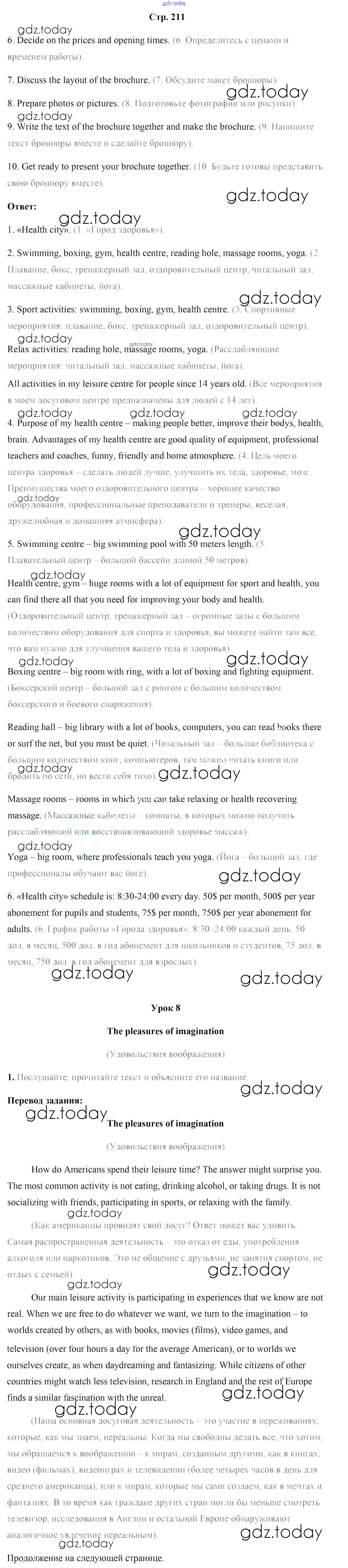 На страницах сайта gdz.today вы найдете учебный и вспомогательный материал, направленный на улучшения знаний школьной программы. ГДЗ - онлайн мир знаний Страницы (решение) 211 Учебнику по Английскому языку для 9 класса Лапицкая, Демченко Высшая школа 2018
