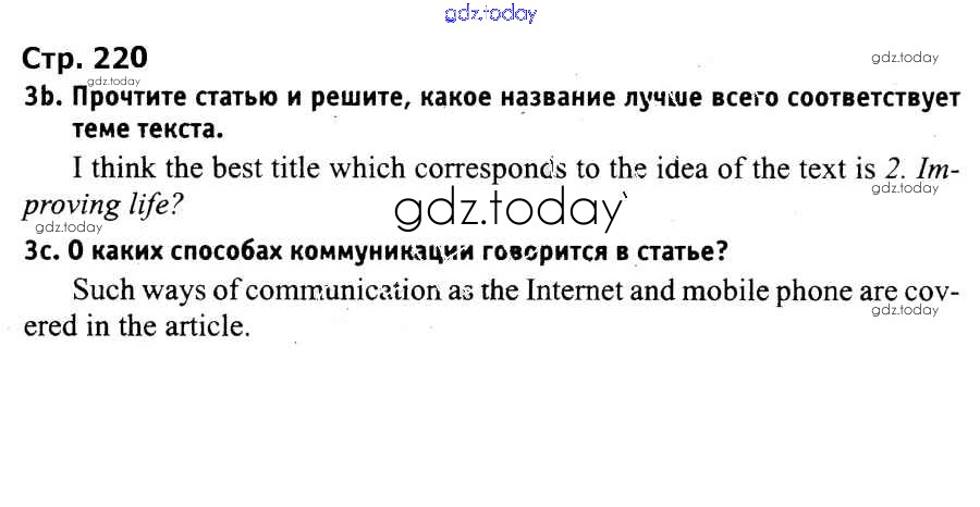 На страницах сайта gdz.today вы найдете учебный и вспомогательный материал, направленный на улучшения знаний школьной программы. ГДЗ - онлайн мир знаний Страницы (решение) 220 Учебнику по Английскому языку для 9 класса Лапицкая, Демченко Высшая школа 2018