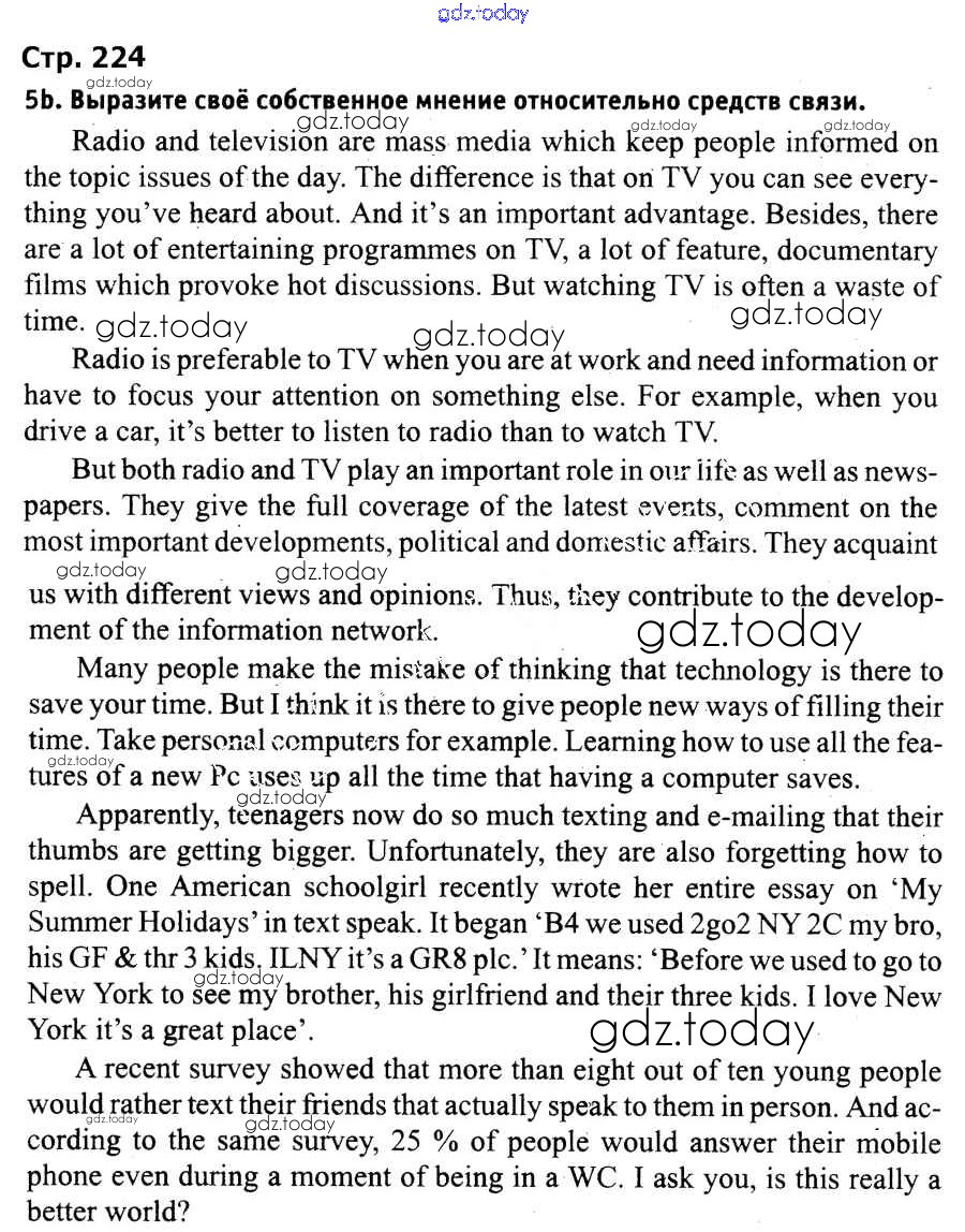 На страницах сайта gdz.today вы найдете учебный и вспомогательный материал, направленный на улучшения знаний школьной программы. ГДЗ - онлайн мир знаний Страницы (решение) 224 Учебнику по Английскому языку для 9 класса Лапицкая, Демченко Высшая школа 2018