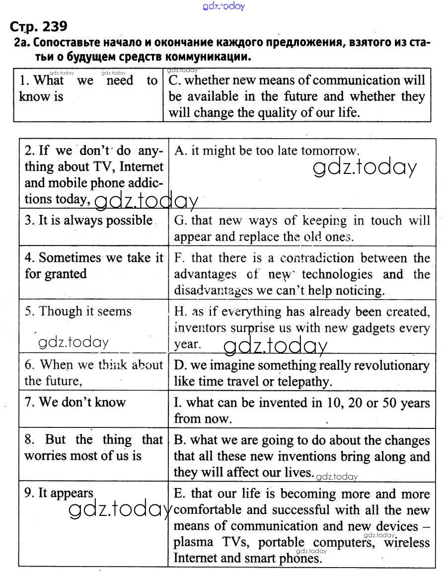 На страницах сайта gdz.today вы найдете учебный и вспомогательный материал, направленный на улучшения знаний школьной программы. ГДЗ - онлайн мир знаний Страницы (решение) 239 Учебнику по Английскому языку для 9 класса Лапицкая, Демченко Высшая школа 2018