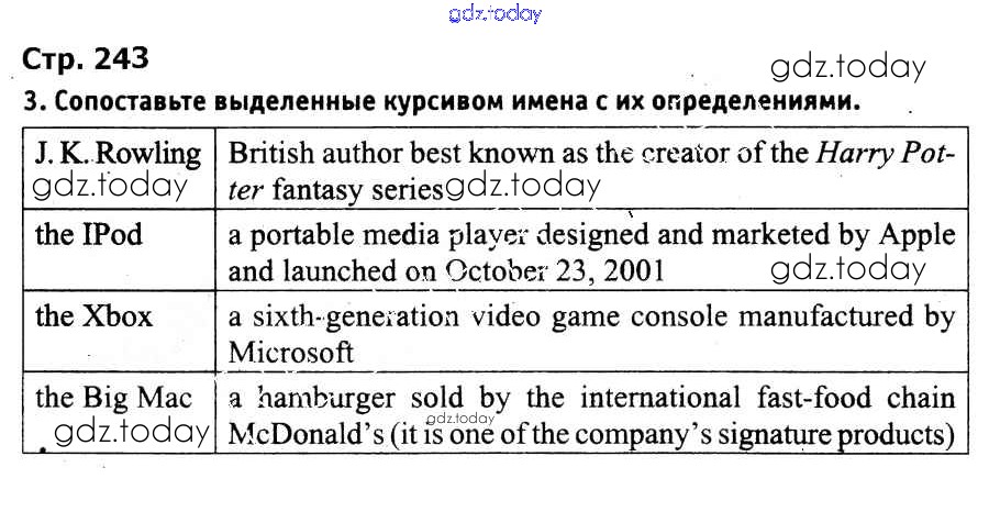 На страницах сайта gdz.today вы найдете учебный и вспомогательный материал, направленный на улучшения знаний школьной программы. ГДЗ - онлайн мир знаний Страницы (решение) 243 Учебнику по Английскому языку для 9 класса Лапицкая, Демченко Высшая школа 2018
