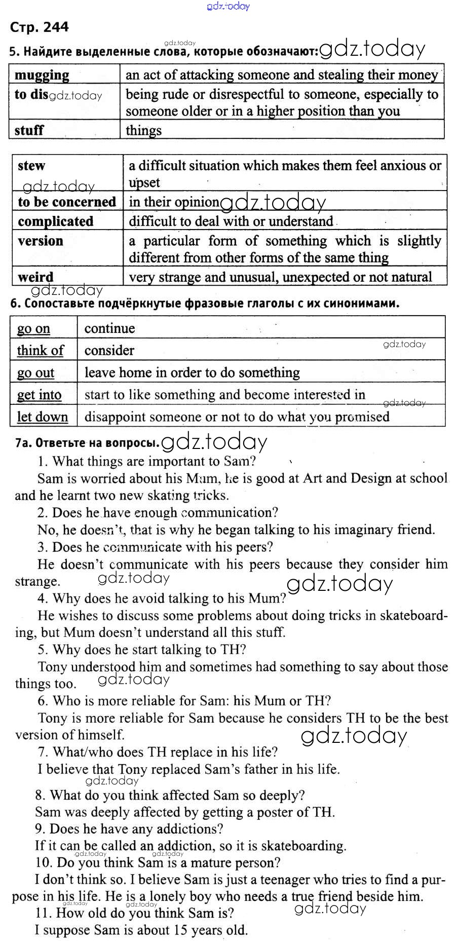 На страницах сайта gdz.today вы найдете учебный и вспомогательный материал, направленный на улучшения знаний школьной программы. ГДЗ - онлайн мир знаний Страницы (решение) 244 Учебнику по Английскому языку для 9 класса Лапицкая, Демченко Высшая школа 2018