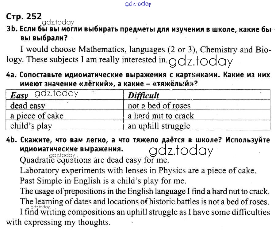 На страницах сайта gdz.today вы найдете учебный и вспомогательный материал, направленный на улучшения знаний школьной программы. ГДЗ - онлайн мир знаний Страницы (решение) 252 Учебнику по Английскому языку для 9 класса Лапицкая, Демченко Высшая школа 2018