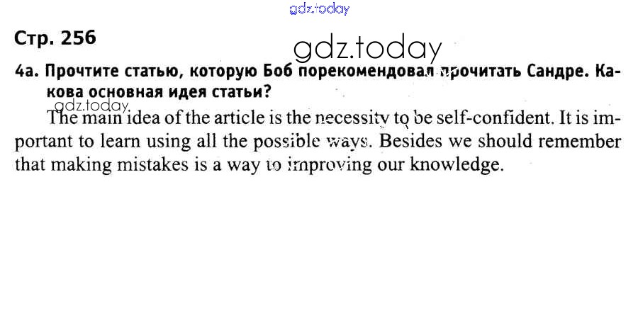 На страницах сайта gdz.today вы найдете учебный и вспомогательный материал, направленный на улучшения знаний школьной программы. ГДЗ - онлайн мир знаний Страницы (решение) 256 Учебнику по Английскому языку для 9 класса Лапицкая, Демченко Высшая школа 2018