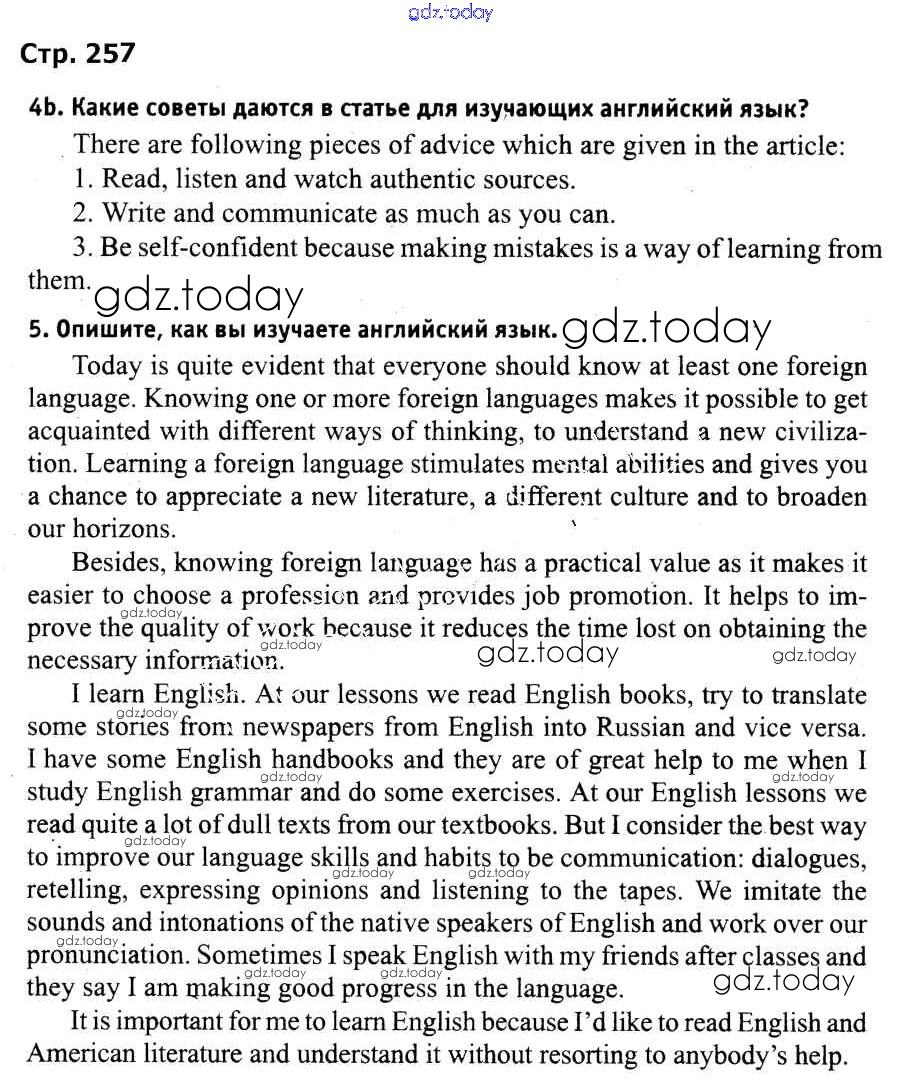 На страницах сайта gdz.today вы найдете учебный и вспомогательный материал, направленный на улучшения знаний школьной программы. ГДЗ - онлайн мир знаний Страницы (решение) 257 Учебнику по Английскому языку для 9 класса Лапицкая, Демченко Высшая школа 2018