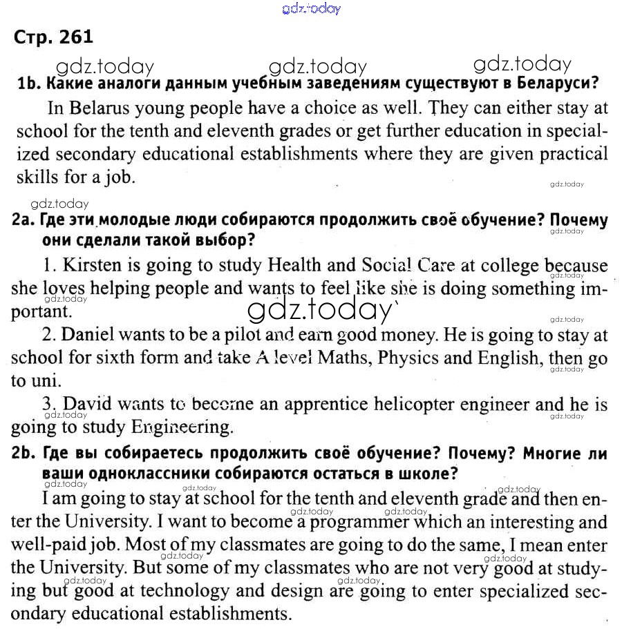 Ответы к Страницы (решение) 261 Учебнику по Английскому языку для 9 класса Лапицкая, Демченко Высшая школа 2018
