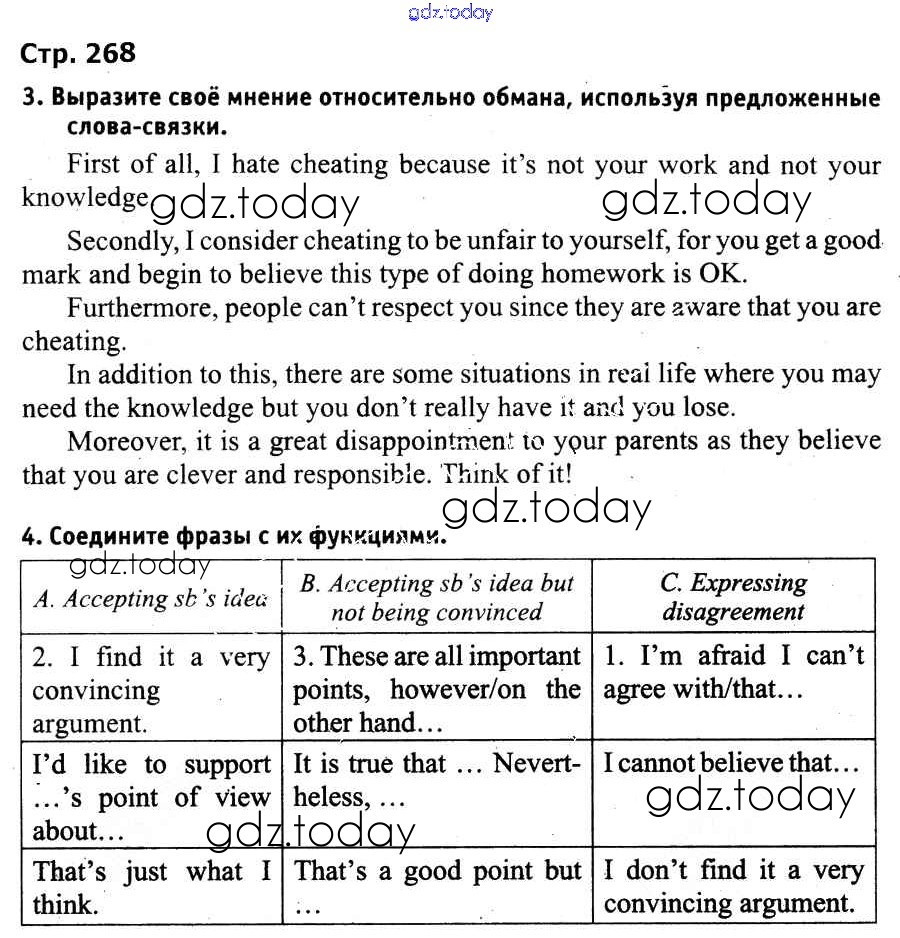На страницах сайта gdz.today вы найдете учебный и вспомогательный материал, направленный на улучшения знаний школьной программы. ГДЗ - онлайн мир знаний Страницы (решение) 268 Учебнику по Английскому языку для 9 класса Лапицкая, Демченко Высшая школа 2018