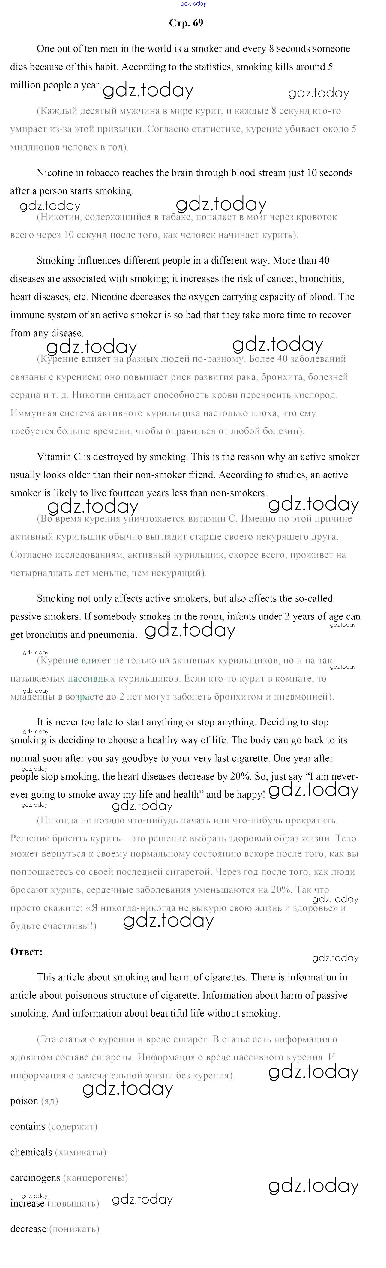 На страницах сайта gdz.today вы найдете учебный и вспомогательный материал, направленный на улучшения знаний школьной программы. ГДЗ - онлайн мир знаний Страницы (решение) 69 Учебнику по Английскому языку для 9 класса Лапицкая, Демченко Высшая школа 2018