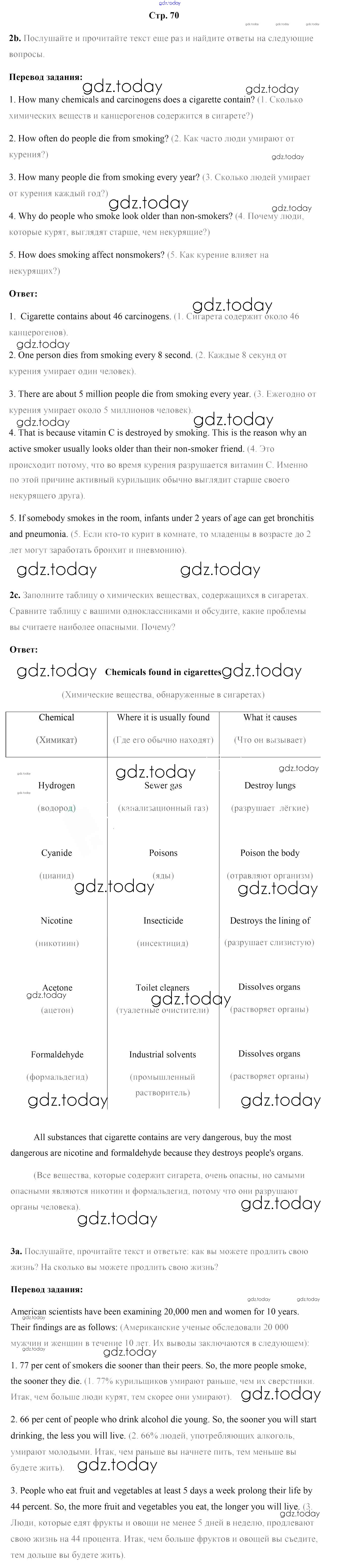 На страницах сайта gdz.today вы найдете учебный и вспомогательный материал, направленный на улучшения знаний школьной программы. ГДЗ - онлайн мир знаний Страницы (решение) 70 Учебнику по Английскому языку для 9 класса Лапицкая, Демченко Высшая школа 2018