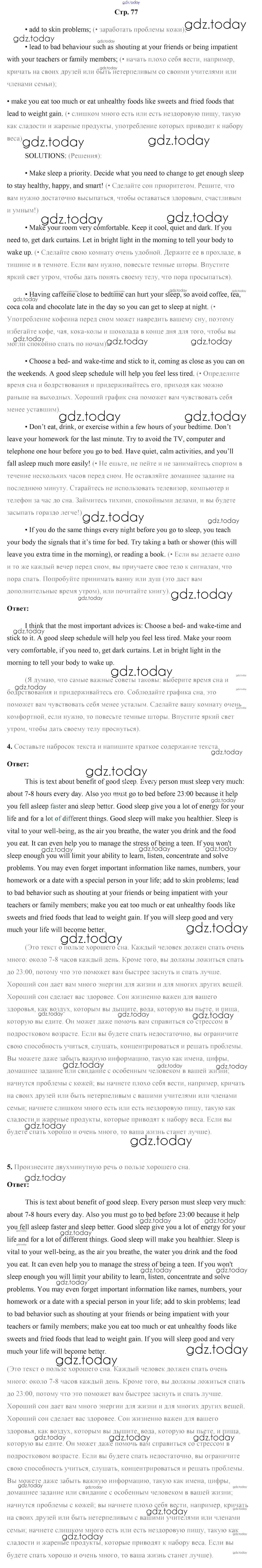 На страницах сайта gdz.today вы найдете учебный и вспомогательный материал, направленный на улучшения знаний школьной программы. ГДЗ - онлайн мир знаний Страницы (решение) 77 Учебнику по Английскому языку для 9 класса Лапицкая, Демченко Высшая школа 2018