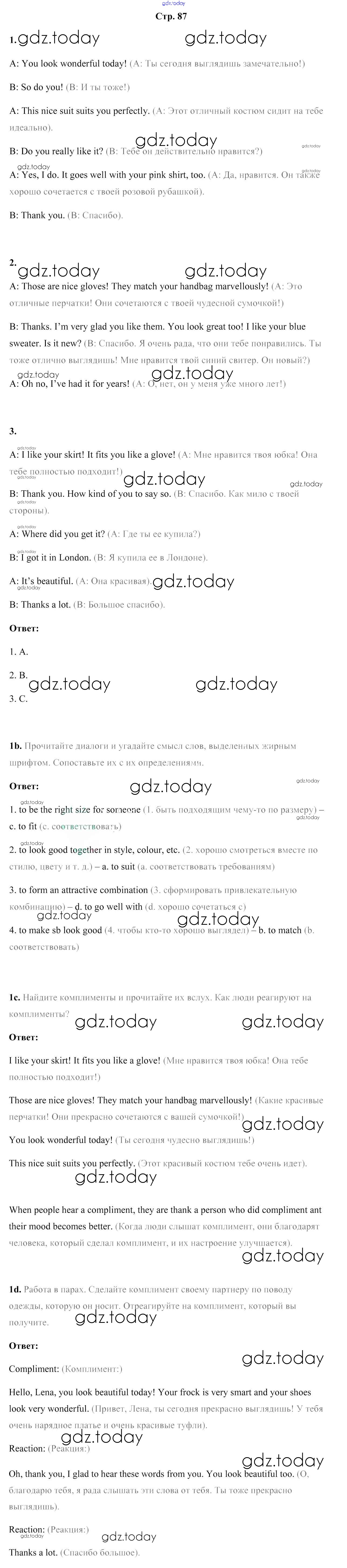 Ответы к Страницы (решение) 87 Учебнику по Английскому языку для 9 класса Лапицкая, Демченко Высшая школа 2018