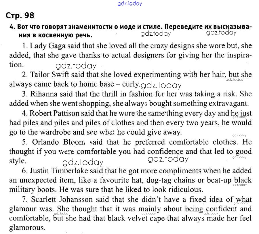 На страницах сайта gdz.today вы найдете учебный и вспомогательный материал, направленный на улучшения знаний школьной программы. ГДЗ - онлайн мир знаний Страницы (решение) 98 Учебнику по Английскому языку для 9 класса Лапицкая, Демченко Высшая школа 2018