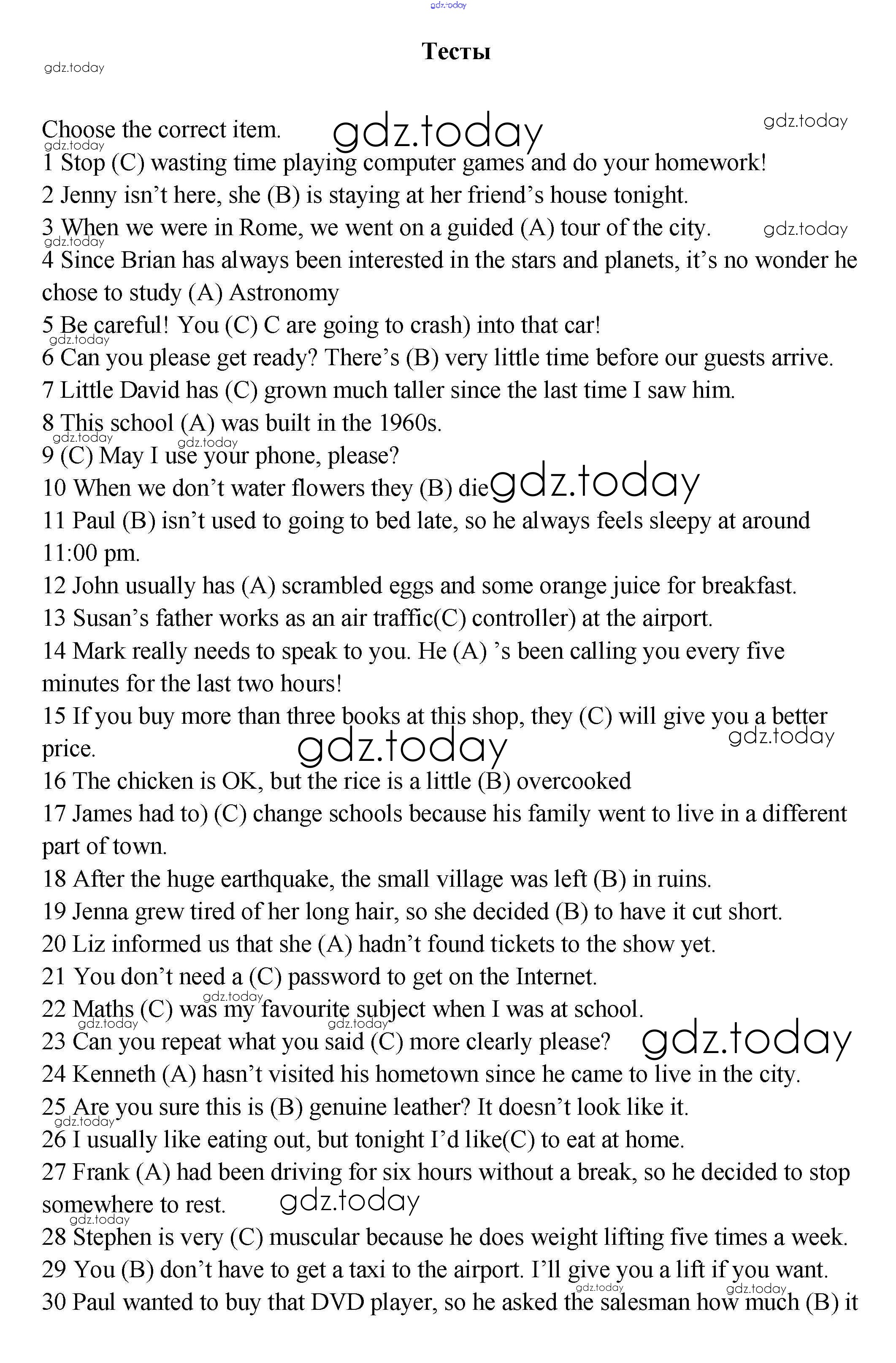 Ответы к Решение к Вводный тест Тест Контрольным заданиям по Английскому языку для 9 класса Ваулина, Дули Просвещение Spotlight 2018