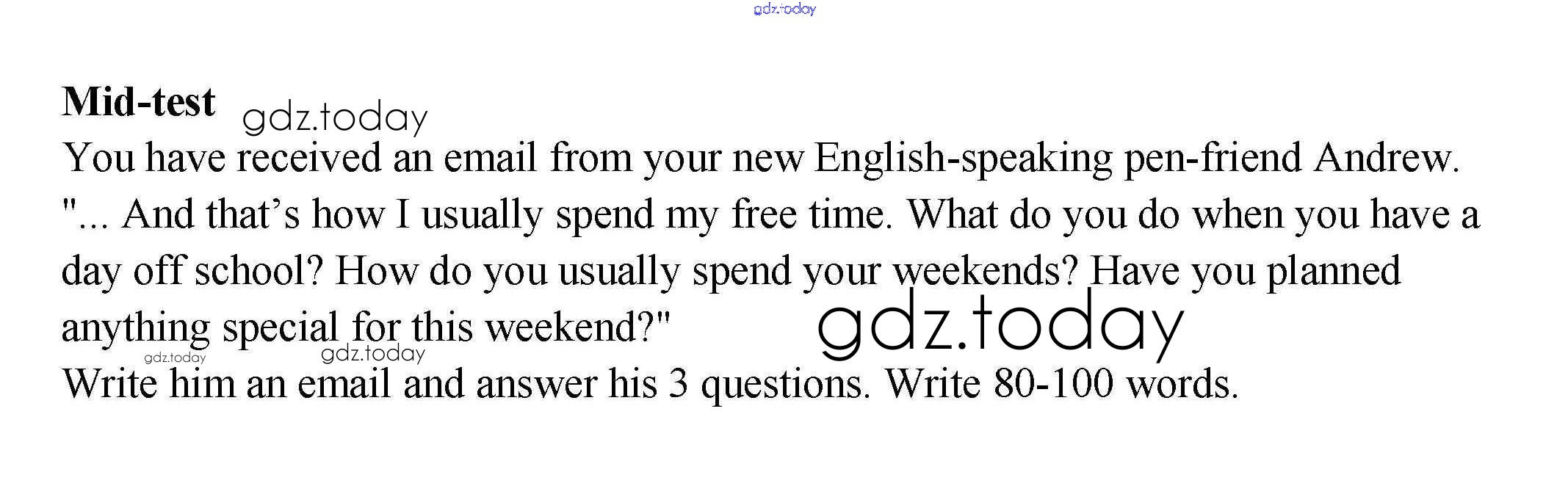 На страницах сайта gdz.today вы найдете учебный и вспомогательный материал, направленный на улучшения знаний школьной программы. ГДЗ - онлайн мир знаний Решение к Optional writing Mid-test Контрольным заданиям по Английскому языку для 9 класса Ваулина, Дули Просвещение Spotlight 2018