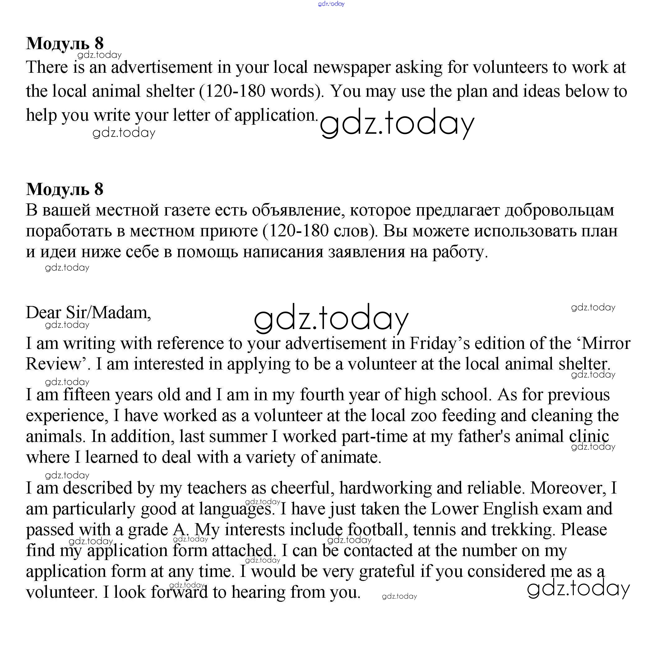 На страницах сайта gdz.today вы найдете учебный и вспомогательный материал, направленный на улучшения знаний школьной программы. ГДЗ - онлайн мир знаний Решение к Optional writing Module 8 Контрольным заданиям по Английскому языку для 9 класса Ваулина, Дули Просвещение Spotlight 2018
