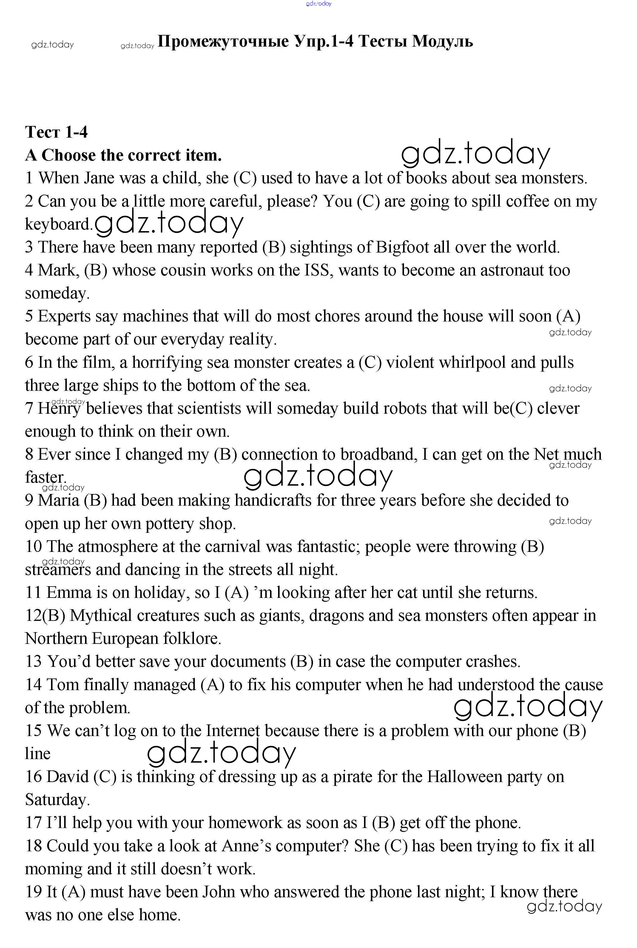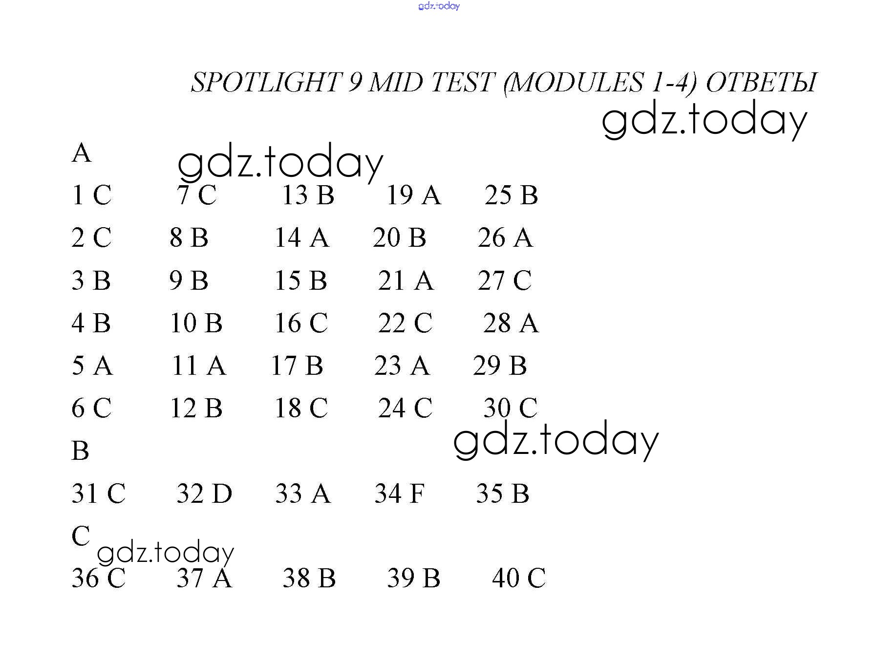На страницах сайта gdz.today вы найдете учебный и вспомогательный материал, направленный на улучшения знаний школьной программы. ГДЗ - онлайн мир знаний Решение к промежуточному тесту Тест Контрольным заданиям по Английскому языку для 9 класса Ваулина, Дули Просвещение Spotlight 2018