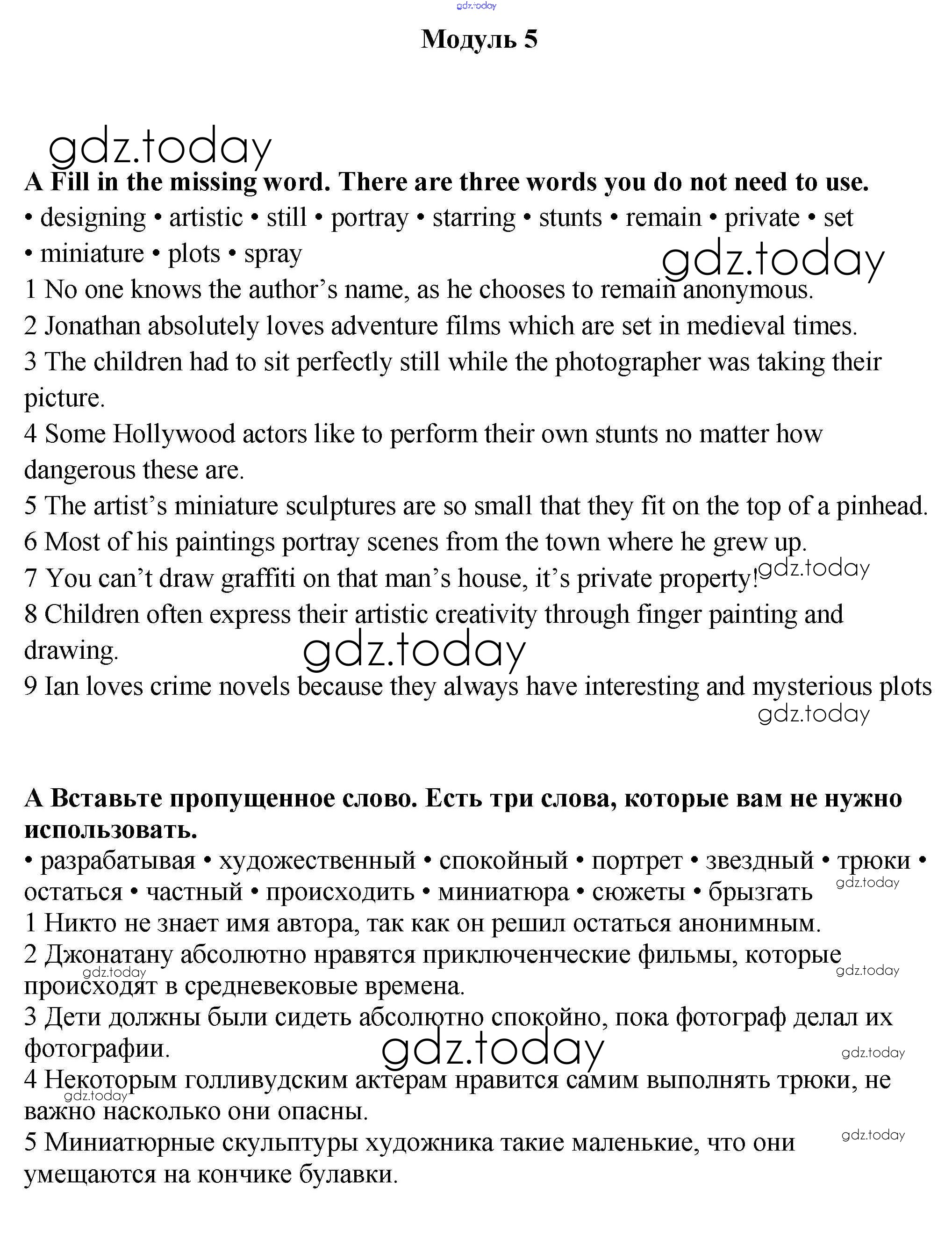 На страницах сайта gdz.today вы найдете учебный и вспомогательный материал, направленный на улучшения знаний школьной программы. ГДЗ - онлайн мир знаний Решение к Модулю 5 A Контрольным заданиям по Английскому языку для 9 класса Ваулина, Дули Просвещение Spotlight 2018