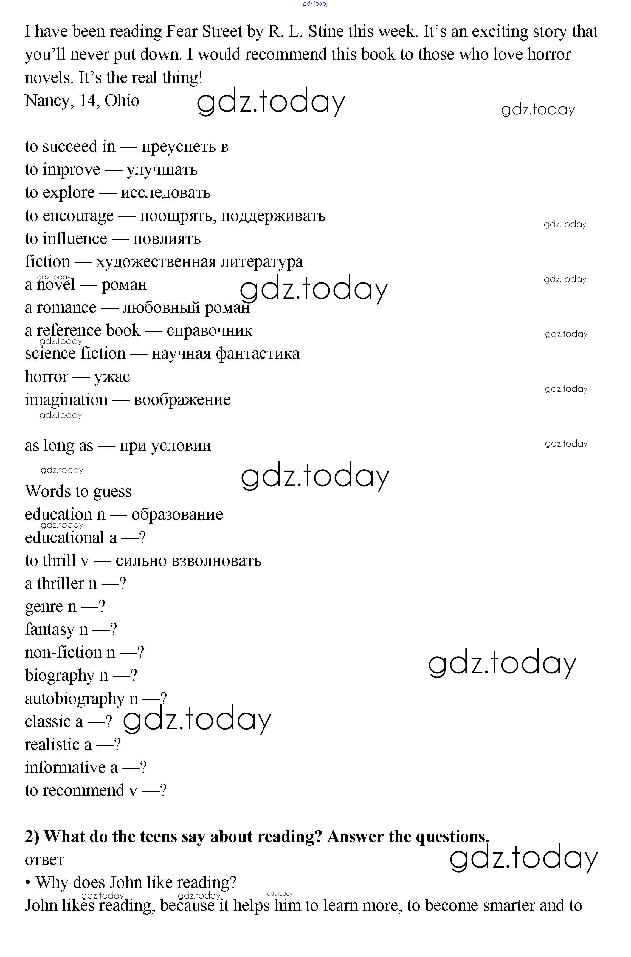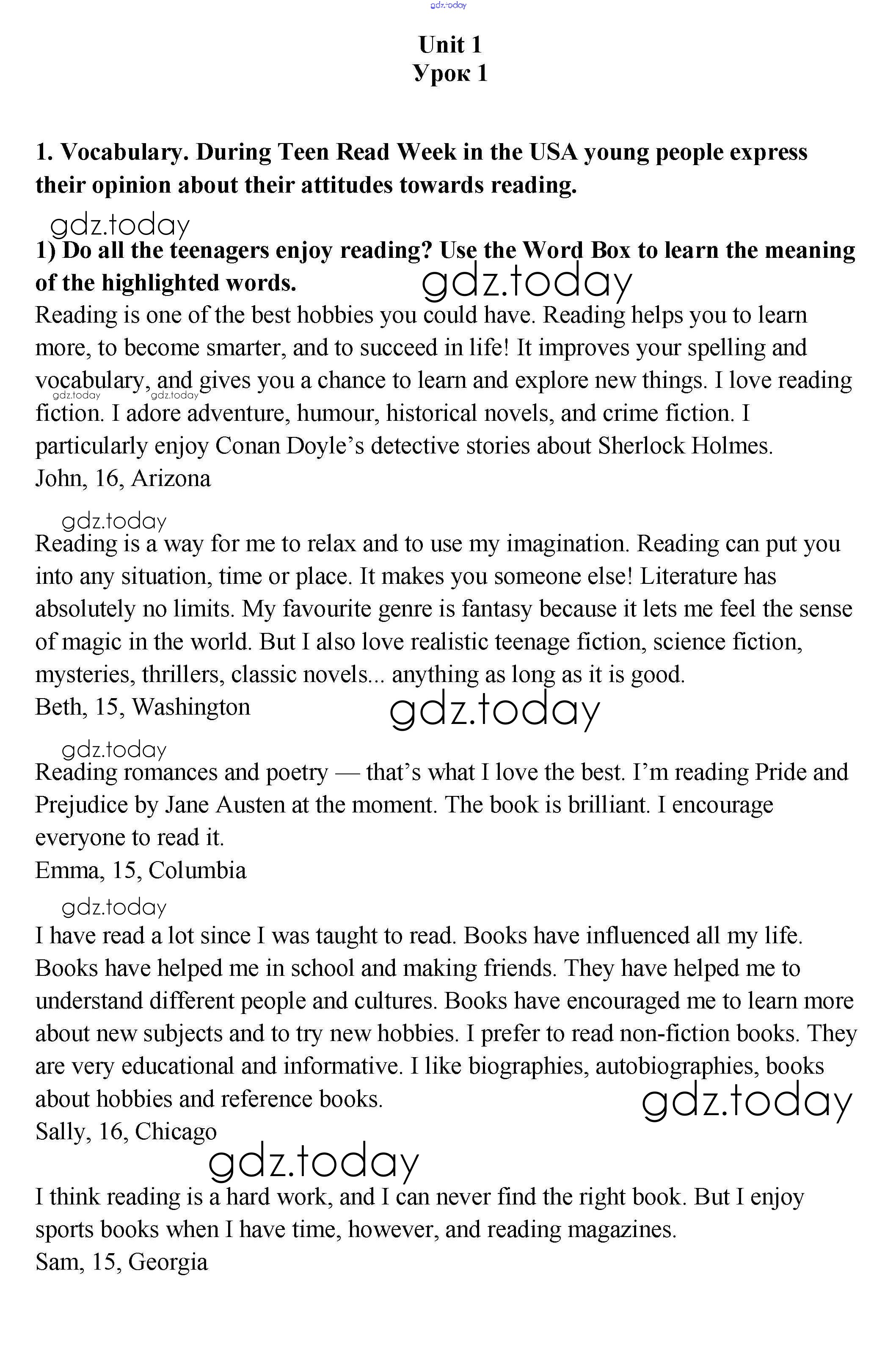 На страницах сайта gdz.today вы найдете учебный и вспомогательный материал, направленный на улучшения знаний школьной программы. ГДЗ - онлайн мир знаний Урок 1 Решение к Unit 1. Reading..? Why not? 1 Учебнику по Английскому языку для 9 класса Кузовлев, Лапа Просвещение УМК 2015