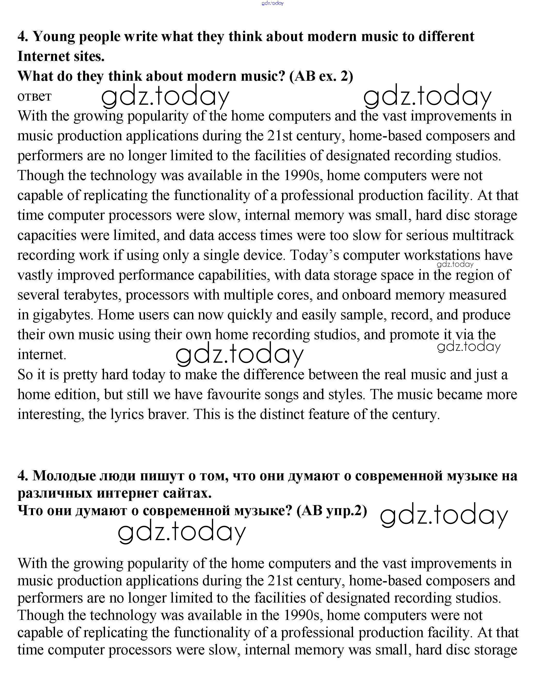 На страницах сайта gdz.today вы найдете учебный и вспомогательный материал, направленный на улучшения знаний школьной программы. ГДЗ - онлайн мир знаний Урок 2 Решение к Unit 2. Let the music begin ... 4 Учебнику по Английскому языку для 9 класса Кузовлев, Лапа Просвещение УМК 2015