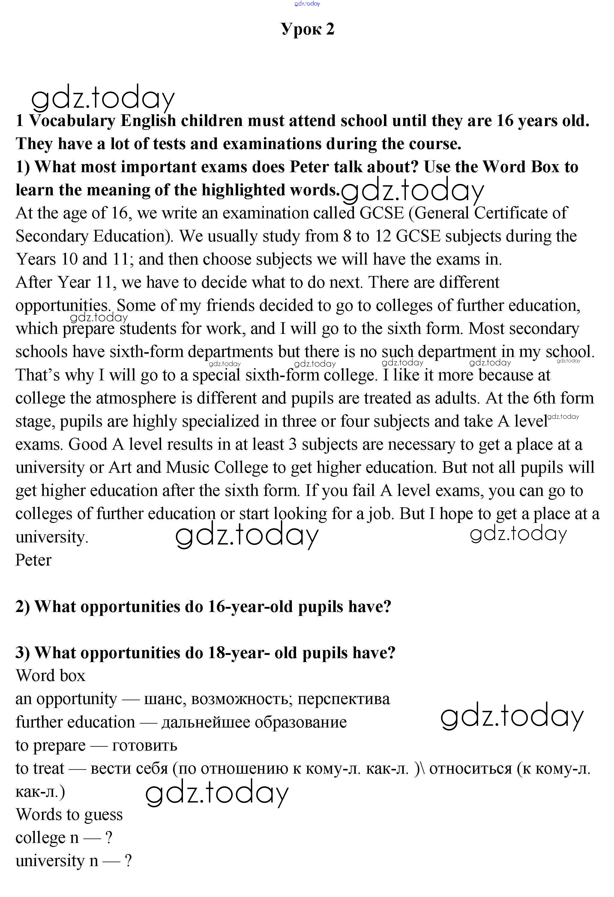 Ответы к Урок 2 Решение к Unit 4. What school do you go to? 1 Учебнику по Английскому языку для 9 класса Кузовлев, Лапа Просвещение УМК 2015