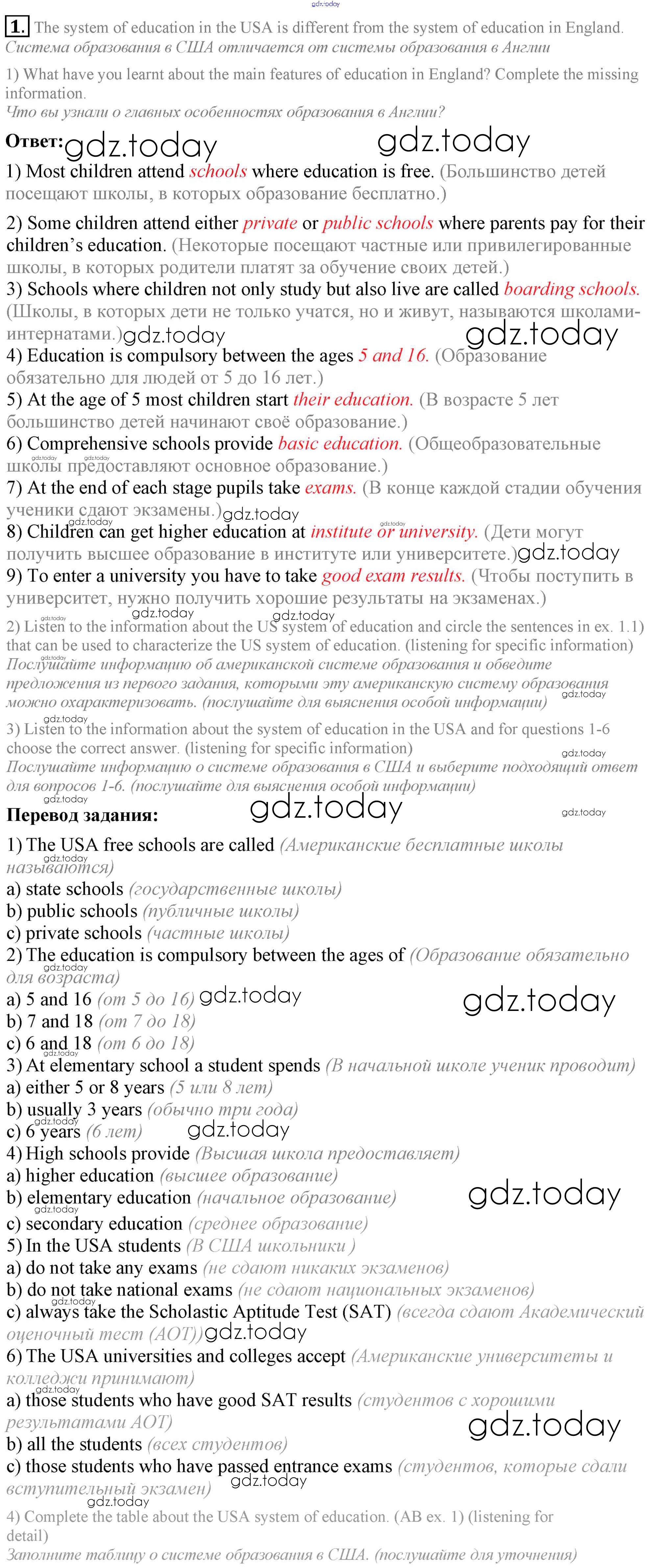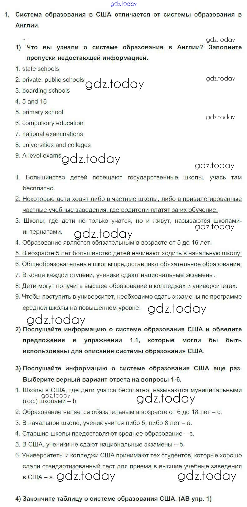 Ответы к Урок 3 Решение к Unit 4. What school do you go to? 1 Учебнику по Английскому языку для 9 класса Кузовлев, Лапа Просвещение УМК 2015