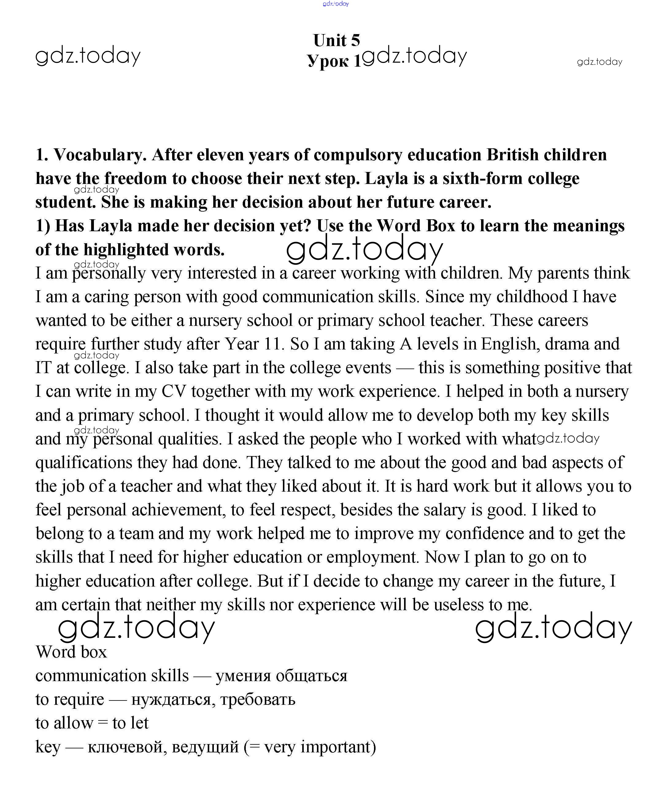 Ответы к Урок 1 Решение к Unit 5. School — what's next? 1 Учебнику по Английскому языку для 9 класса Кузовлев, Лапа Просвещение УМК 2015