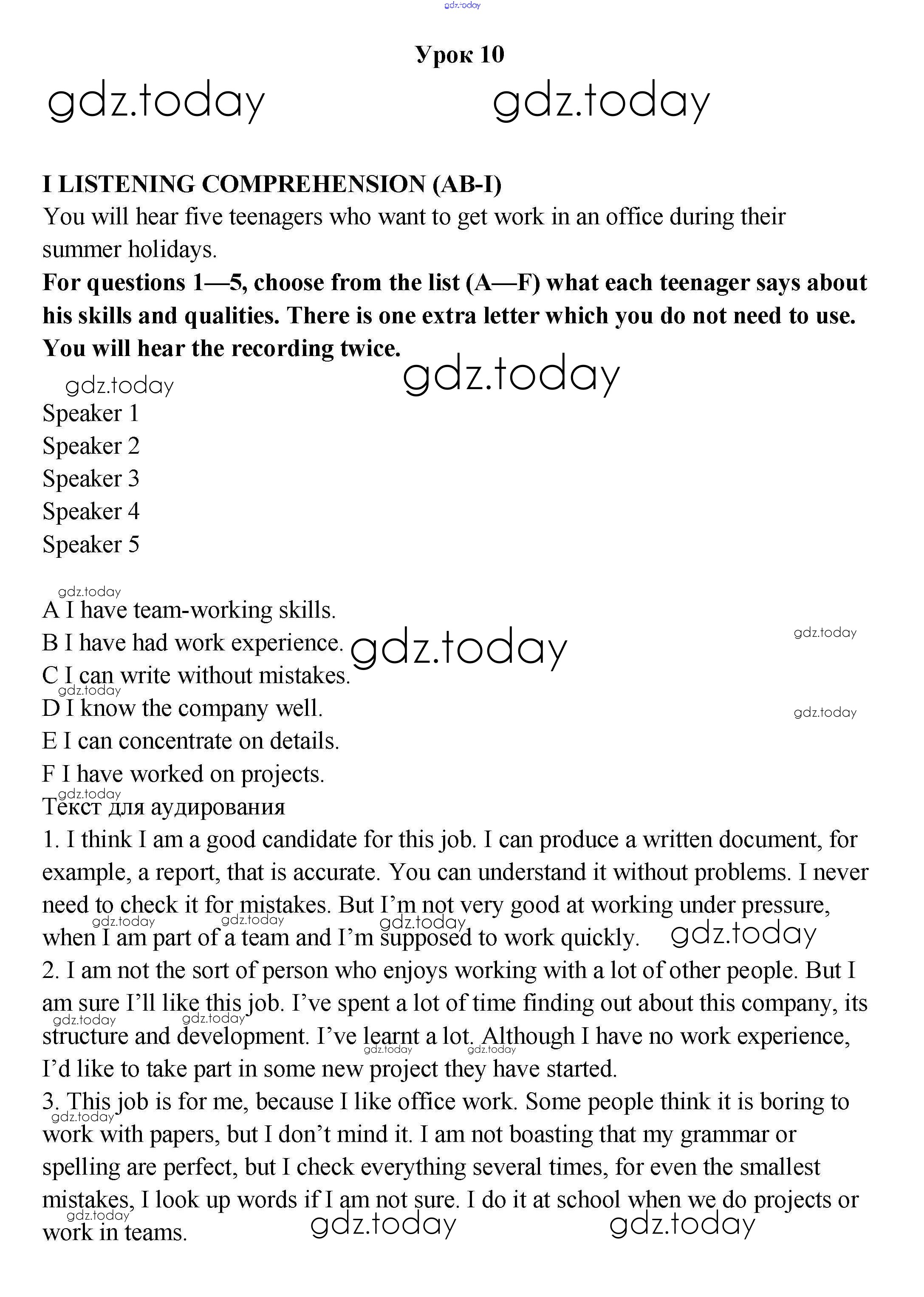 На страницах сайта gdz.today вы найдете учебный и вспомогательный материал, направленный на улучшения знаний школьной программы. ГДЗ - онлайн мир знаний Урок 10 Решение к Unit 5. School — what's next? 1 Учебнику по Английскому языку для 9 класса Кузовлев, Лапа Просвещение УМК 2015