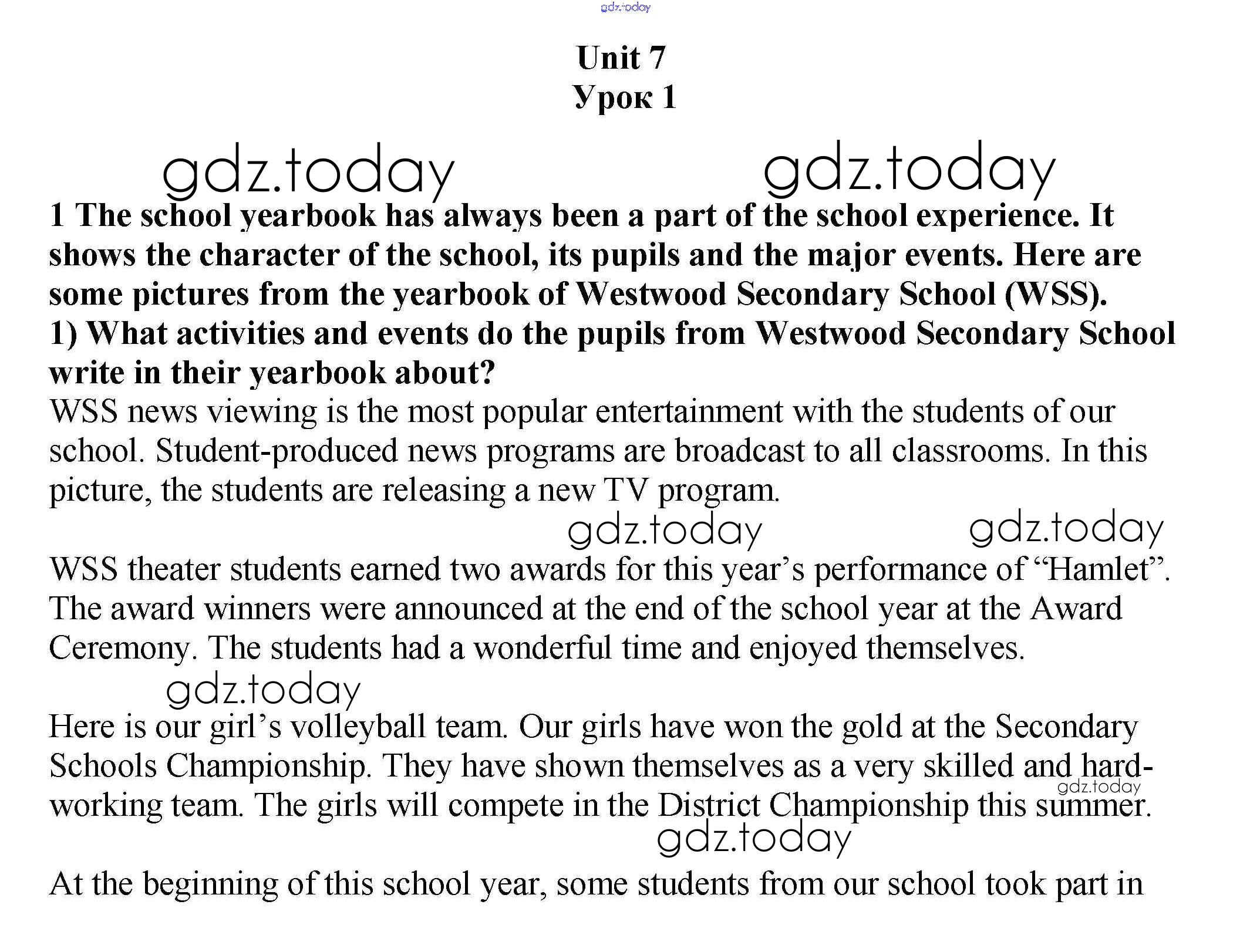 На страницах сайта gdz.today вы найдете учебный и вспомогательный материал, направленный на улучшения знаний школьной программы. ГДЗ - онлайн мир знаний Урок 1 Решение к Unit 7. Our school yearbook 1 Учебнику по Английскому языку для 9 класса Кузовлев, Лапа Просвещение УМК 2015