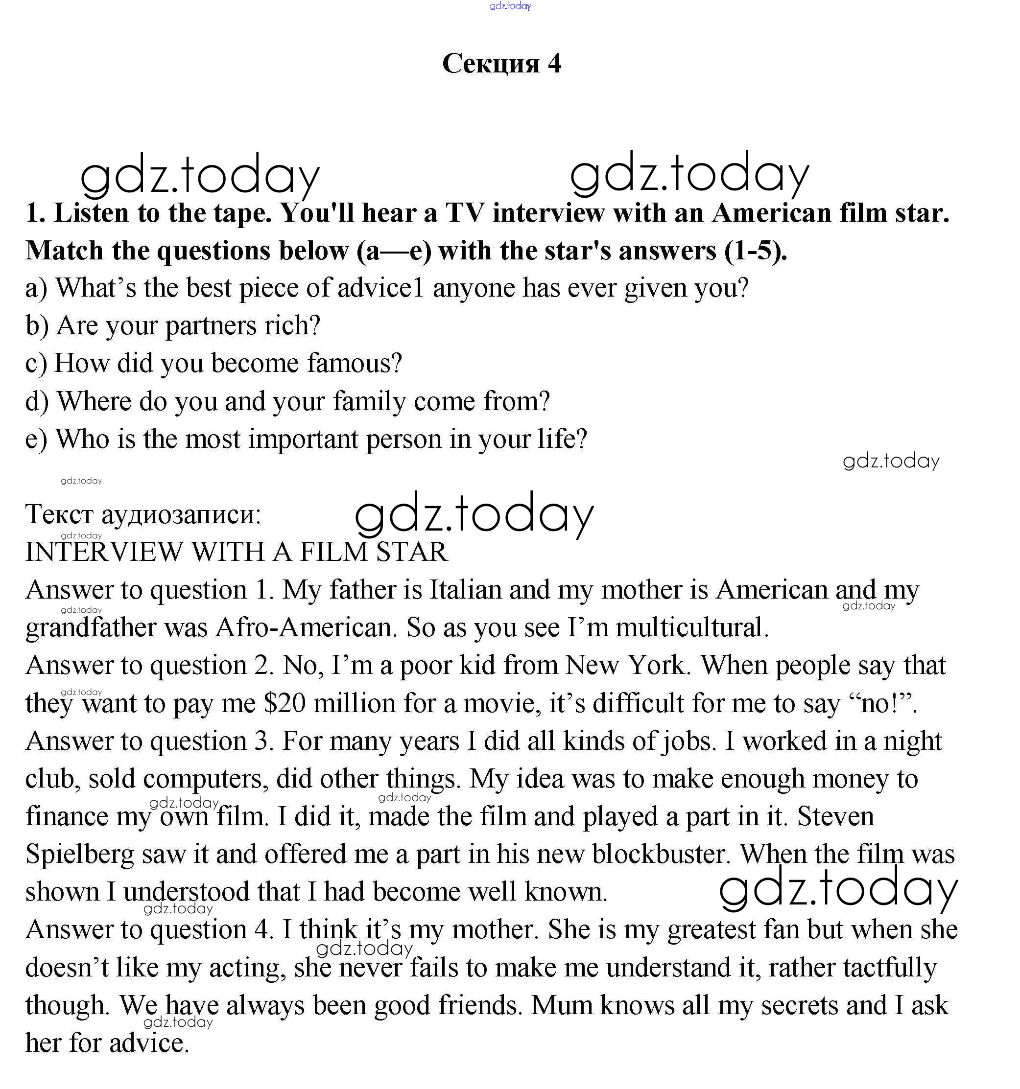 На страницах сайта gdz.today вы найдете учебный и вспомогательный материал, направленный на улучшения знаний школьной программы. ГДЗ - онлайн мир знаний Секция 4 Решение к Unit 1 1 Учебнику по Английскому языку для 9 класса Афанасьева, Михеева Дрофа Новый курс 2014