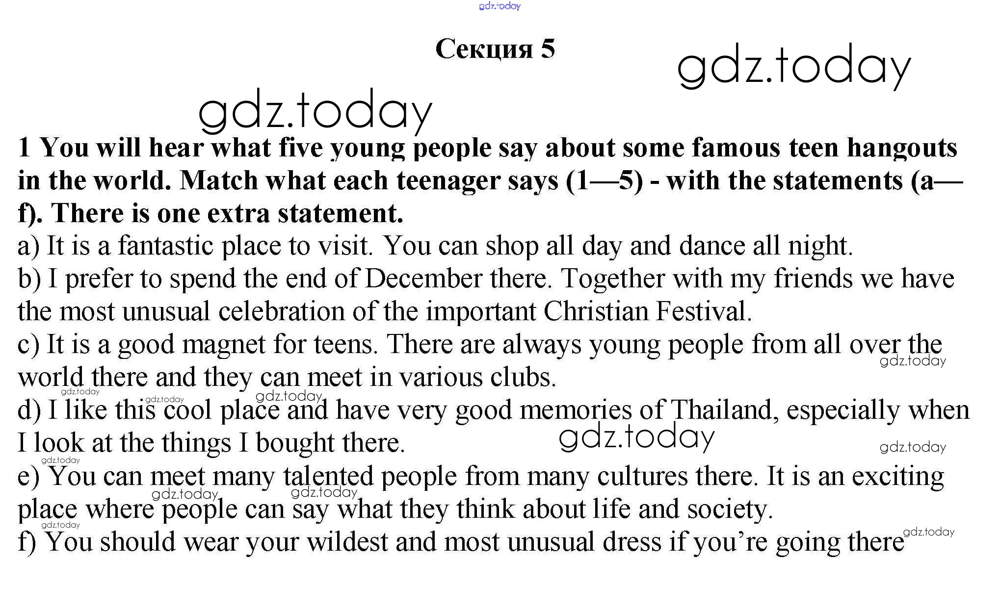 На страницах сайта gdz.today вы найдете учебный и вспомогательный материал, направленный на улучшения знаний школьной программы. ГДЗ - онлайн мир знаний Секция 5 Решение к Unit 4 1 Учебнику по Английскому языку для 9 класса Афанасьева, Михеева Дрофа Новый курс 2014