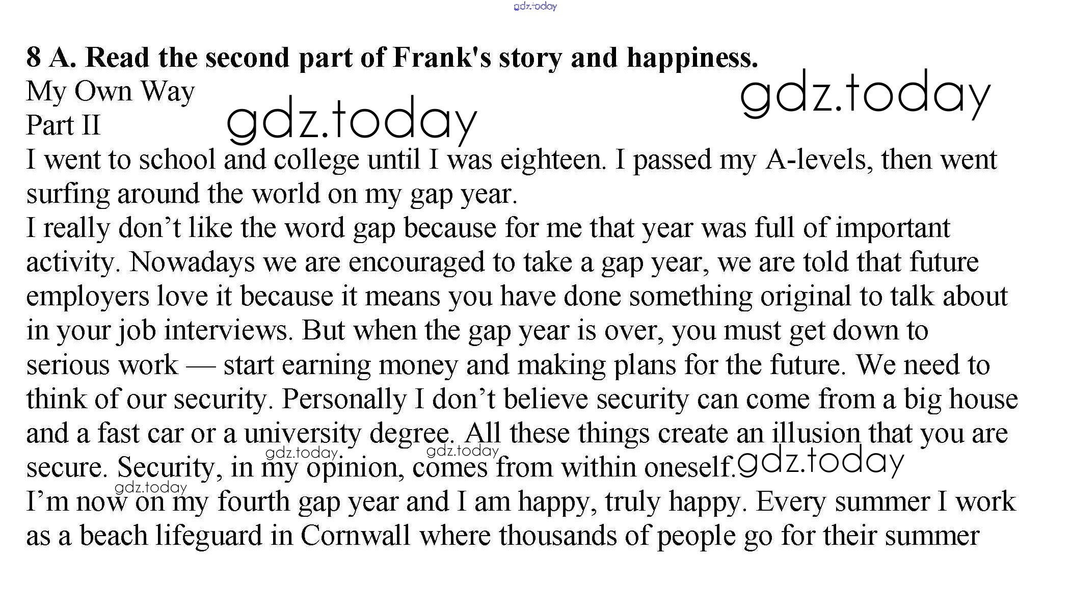 На страницах сайта gdz.today вы найдете учебный и вспомогательный материал, направленный на улучшения знаний школьной программы. ГДЗ - онлайн мир знаний Секция 5 Решение к Unit 5 8 Учебнику по Английскому языку для 9 класса Афанасьева, Михеева Дрофа Новый курс 2014