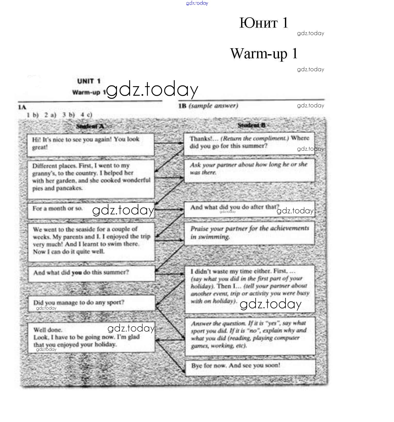 На страницах сайта gdz.today вы найдете учебный и вспомогательный материал, направленный на улучшения знаний школьной программы. ГДЗ - онлайн мир знаний Warm-up 1 Решение к Unit 1 1 Рабочей тетради по Английскому языку для 9 класса Биболетова, Трубанева Титул Enjoy English 2015