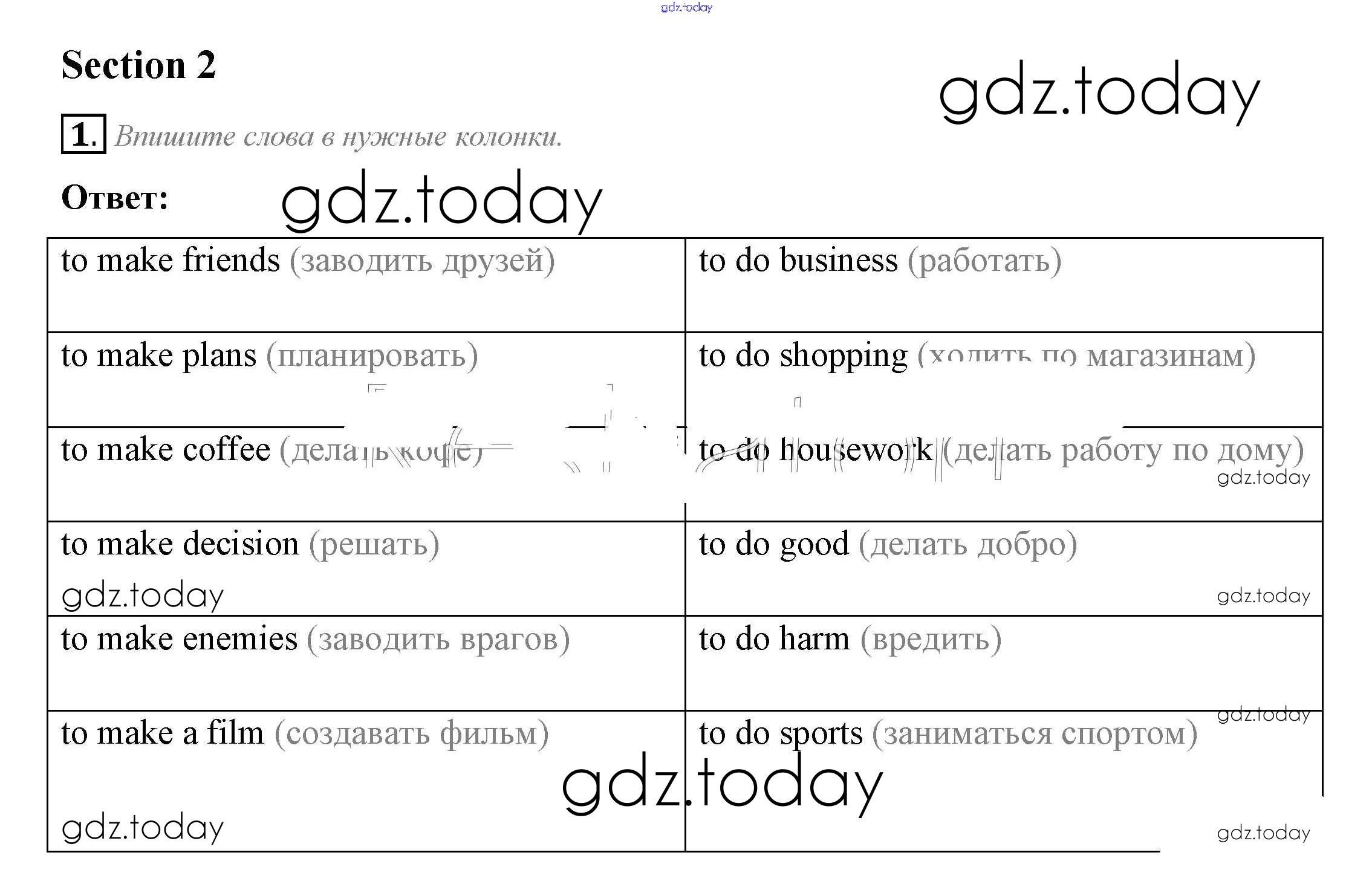 На страницах сайта gdz.today вы найдете учебный и вспомогательный материал, направленный на улучшения знаний школьной программы. ГДЗ - онлайн мир знаний Section 2 Решение к Unit 1 1 Рабочей тетради по Английскому языку для 9 класса Биболетова, Бабушис Аст/Астрель Enjoy English 2017