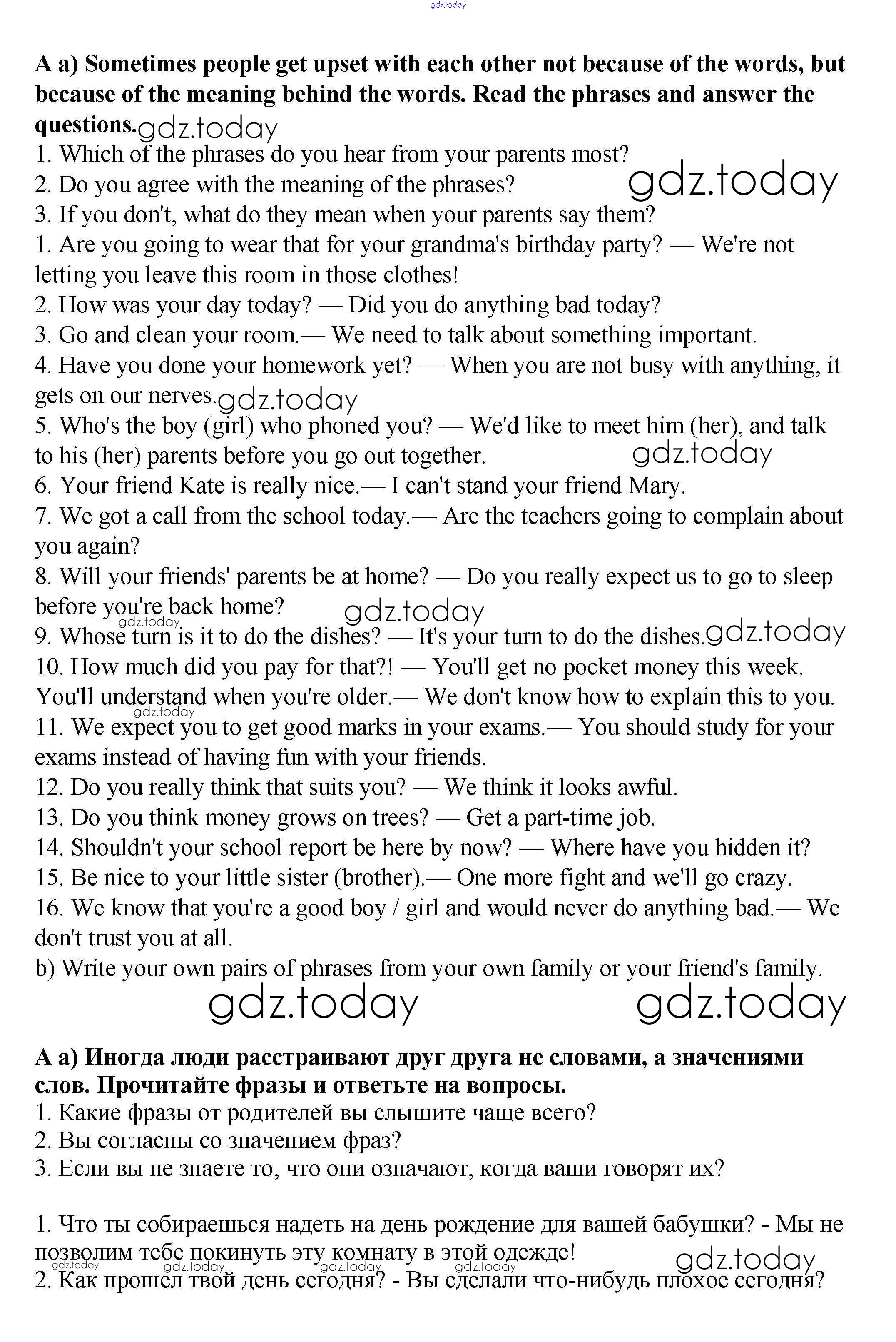 На страницах сайта gdz.today вы найдете учебный и вспомогательный материал, направленный на улучшения знаний школьной программы. ГДЗ - онлайн мир знаний Lesson 5-6 Unit 4. Do you parents understand you? A Рабочей тетради по Английскому языку для 9 класса Кауфман Титул Happy English 2014