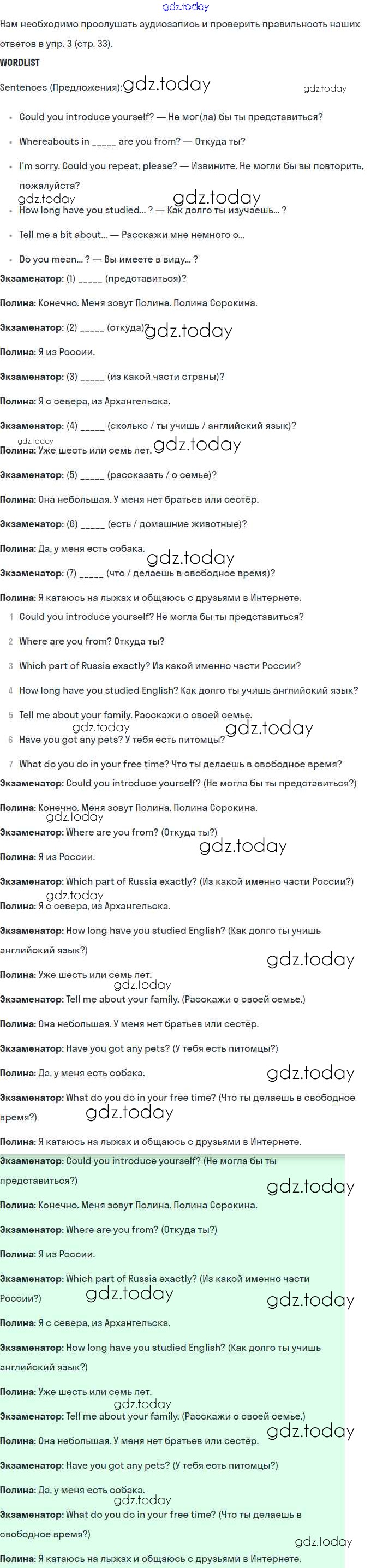 На страницах сайта gdz.today вы найдете учебный и вспомогательный материал, направленный на улучшения знаний школьной программы. ГДЗ - онлайн мир знаний Решение. Страницы 33 Рабочей тетради по Английскому языку для 9 класса Комарова, Ларионова Русское слово Инновационная школа 2016