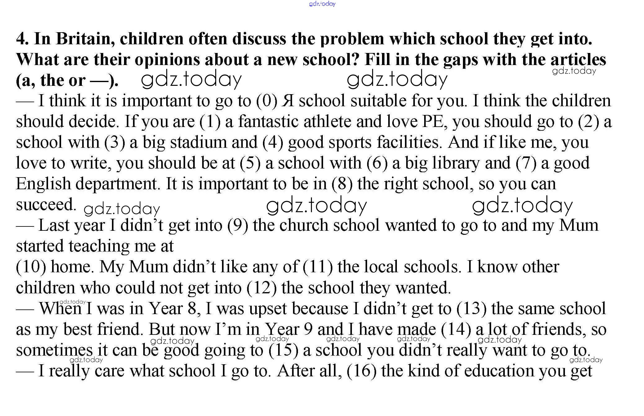 На страницах сайта gdz.today вы найдете учебный и вспомогательный материал, направленный на улучшения знаний школьной программы. ГДЗ - онлайн мир знаний Consolidation Решение. Unit 4. What school do you go to? 4 Рабочей тетради по Английскому языку для 9 класса Кузовлев, Перегудова Просвещение УМК 2016