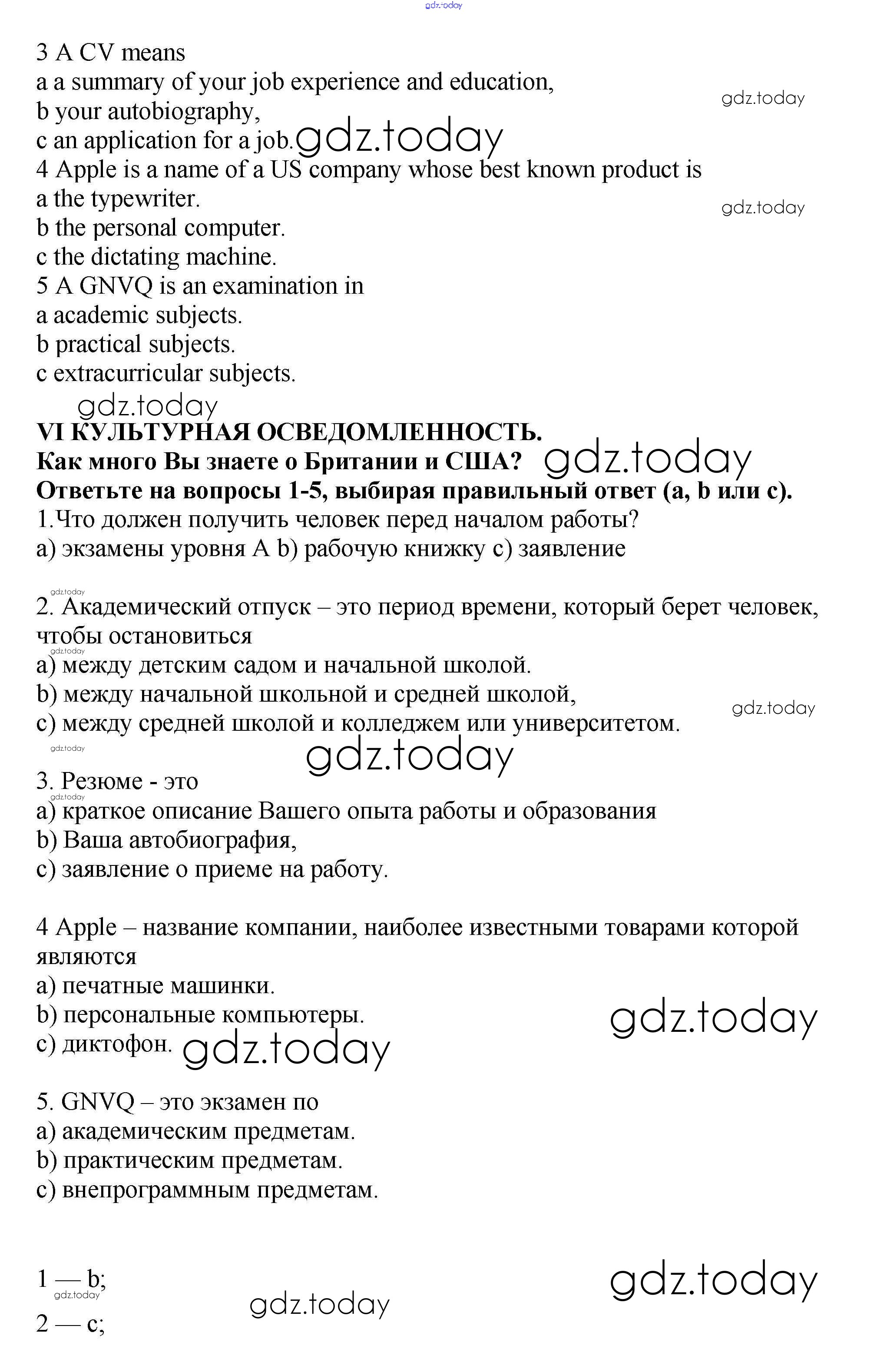 Ответы к Test Решение. Unit 5. School - what's next? 6 Рабочей тетради по Английскому языку для 9 класса Кузовлев, Перегудова Просвещение УМК 2016