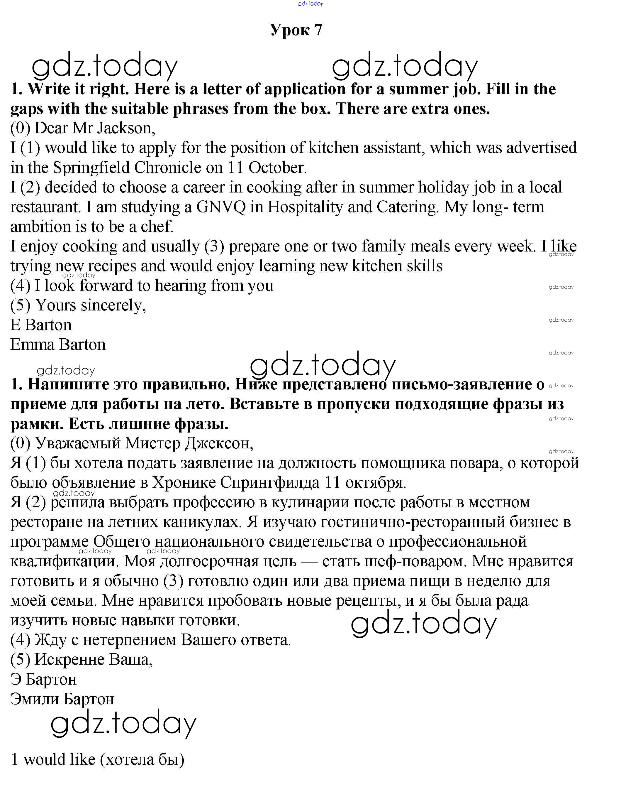 На страницах сайта gdz.today вы найдете учебный и вспомогательный материал, направленный на улучшения знаний школьной программы. ГДЗ - онлайн мир знаний Урок 7 Решение. Unit 5. School - what's next? 1 Рабочей тетради по Английскому языку для 9 класса Кузовлев, Перегудова Просвещение УМК 2016