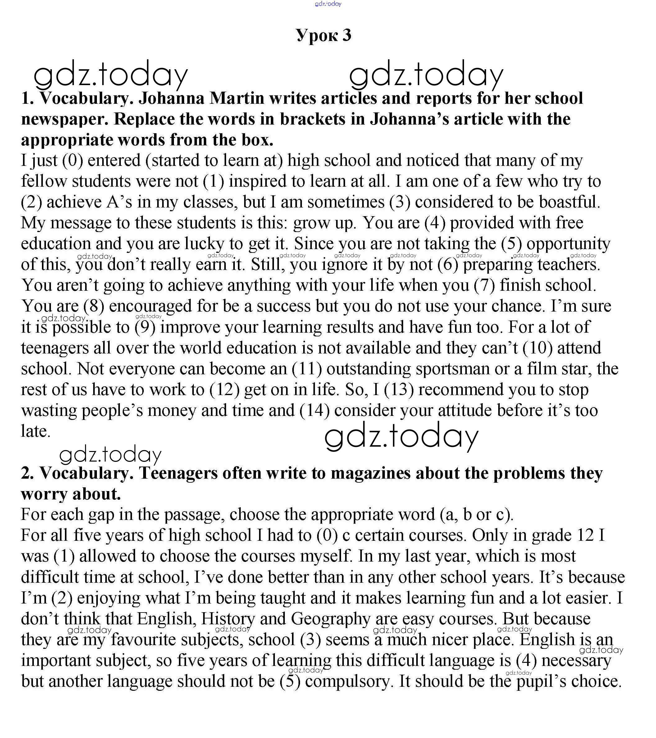На страницах сайта gdz.today вы найдете учебный и вспомогательный материал, направленный на улучшения знаний школьной программы. ГДЗ - онлайн мир знаний Урок 3 Решение. Unit 7. Our school yearbook? 1 Рабочей тетради по Английскому языку для 9 класса Кузовлев, Перегудова Просвещение УМК 2016
