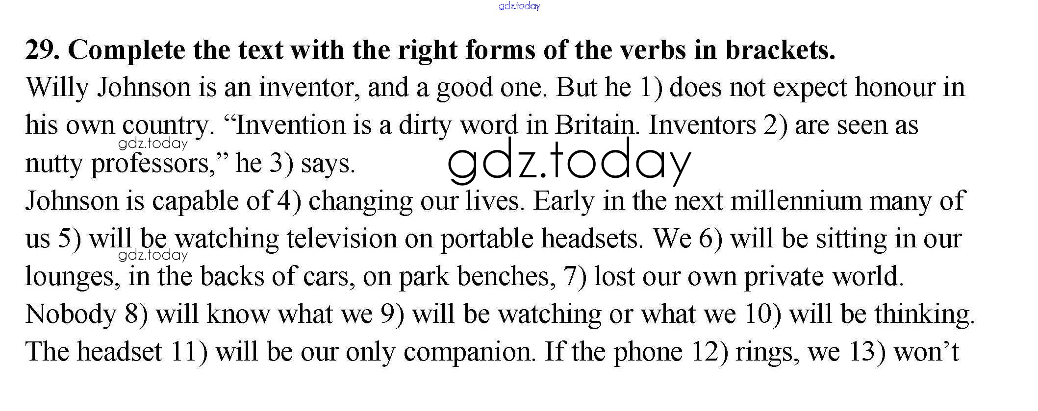 На страницах сайта gdz.today вы найдете учебный и вспомогательный материал, направленный на улучшения знаний школьной программы. ГДЗ - онлайн мир знаний Решение к Unit 3. Science and Technology 29 Рабочей тетради по Английскому языку для 9 класса Афанасьева, Михеева Дрофа Новый курс 2014