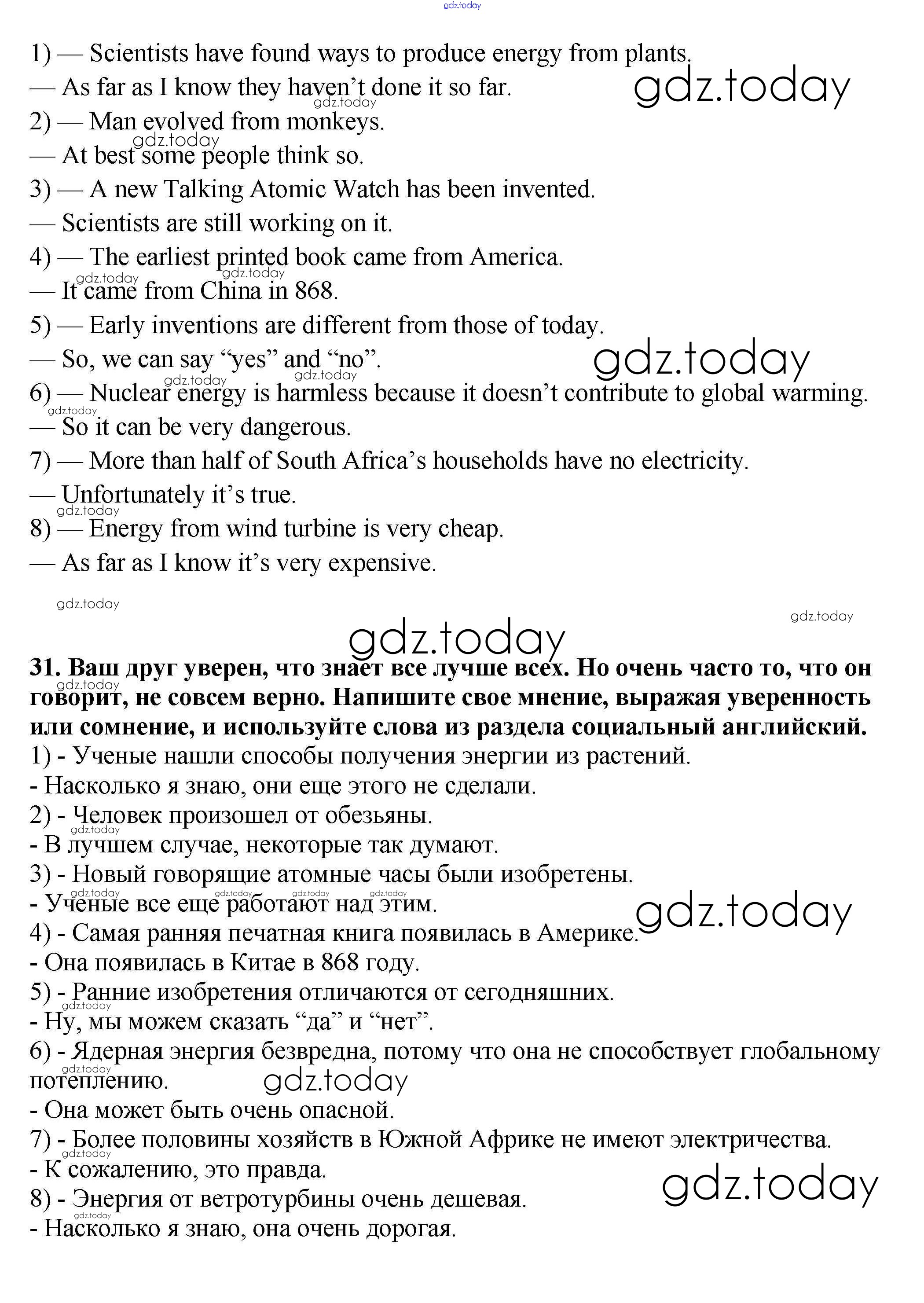 Ответы к Решение к Unit 3. Science and Technology 31 Рабочей тетради по Английскому языку для 9 класса Афанасьева, Михеева Дрофа Новый курс 2014