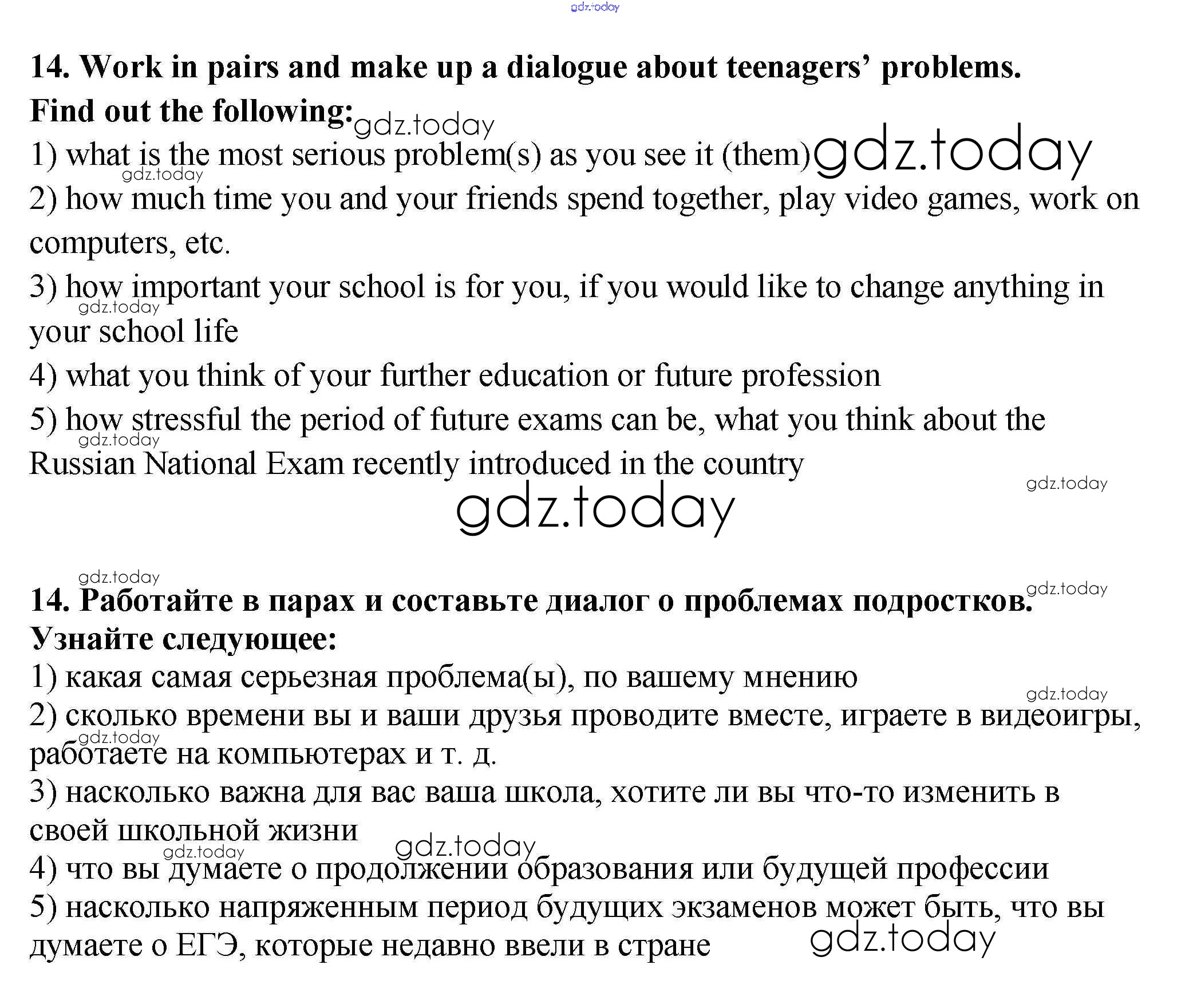 На страницах сайта gdz.today вы найдете учебный и вспомогательный материал, направленный на улучшения знаний школьной программы. ГДЗ - онлайн мир знаний Решение к Unit 4. Teenagers 14 Рабочей тетради по Английскому языку для 9 класса Афанасьева, Михеева Дрофа Новый курс 2014