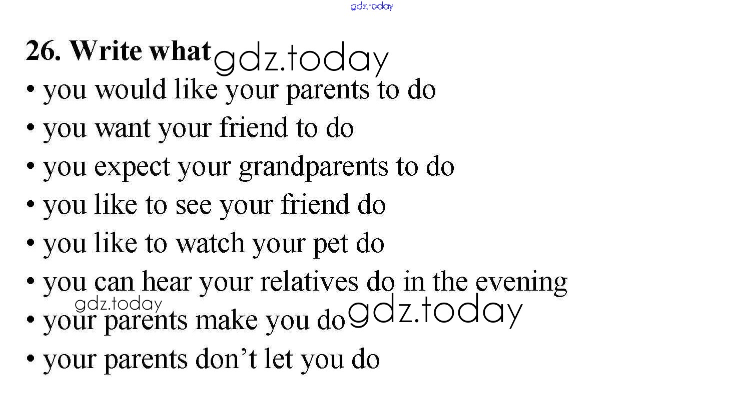 На страницах сайта gdz.today вы найдете учебный и вспомогательный материал, направленный на улучшения знаний школьной программы. ГДЗ - онлайн мир знаний Решение к Unit 4. Teenagers 26 Рабочей тетради по Английскому языку для 9 класса Афанасьева, Михеева Дрофа Новый курс 2014