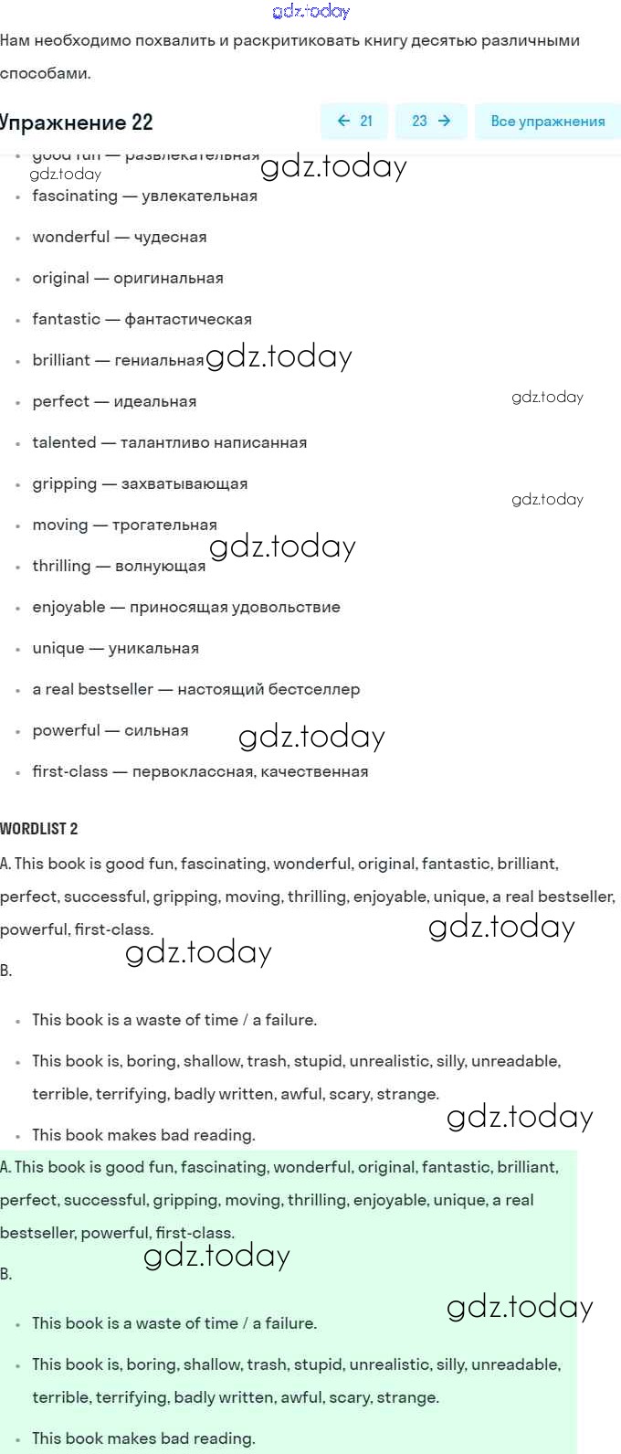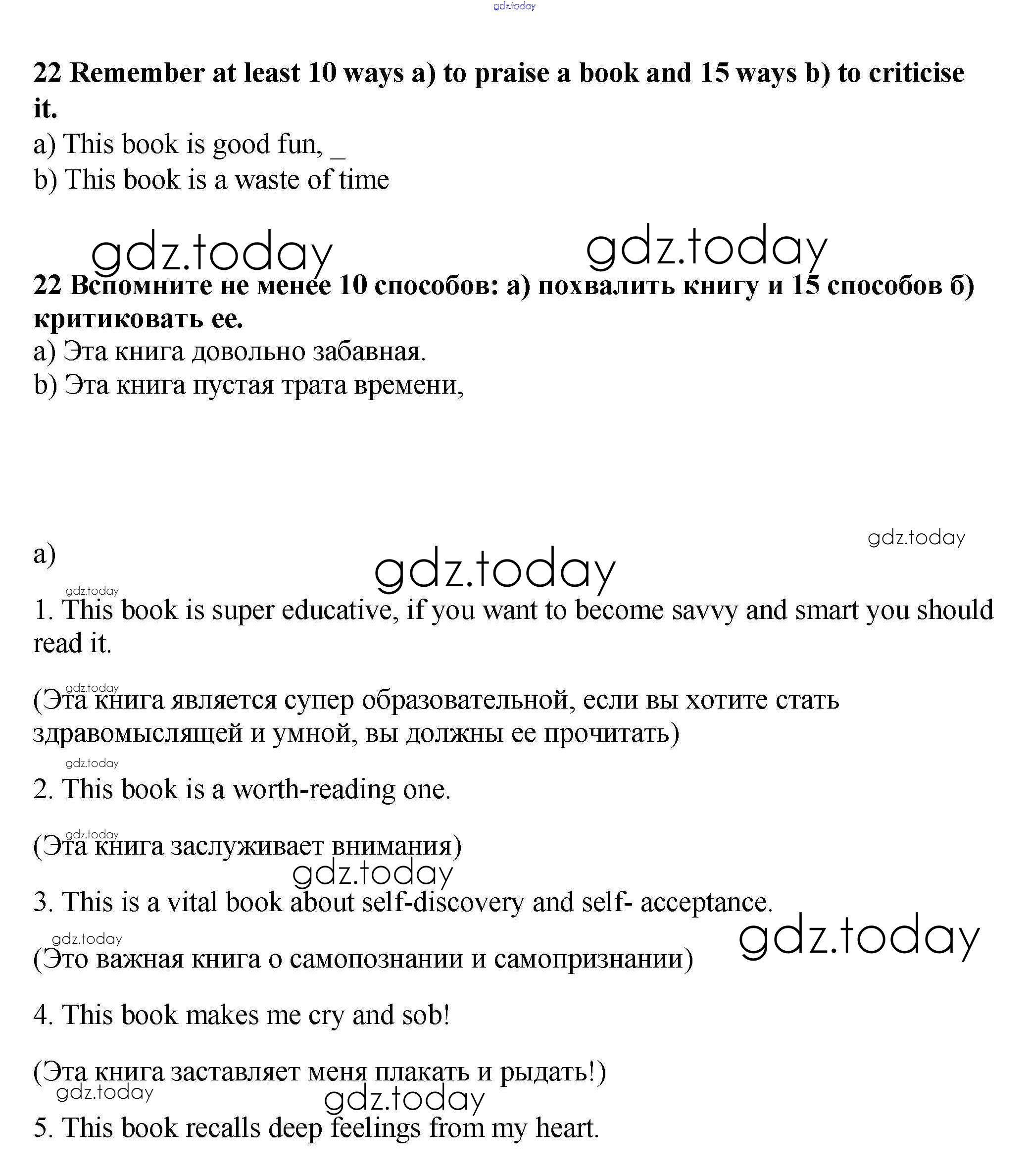 На страницах сайта gdz.today вы найдете учебный и вспомогательный материал, направленный на улучшения знаний школьной программы. ГДЗ - онлайн мир знаний Решение. Unit 2. The Printed Page: Books, Magazines, Newspapers. Pages 30-57 22 Рабочей тетради по Английскому языку для 9 класса Афанасьева, Михеева Дрофа Rainbow 2016