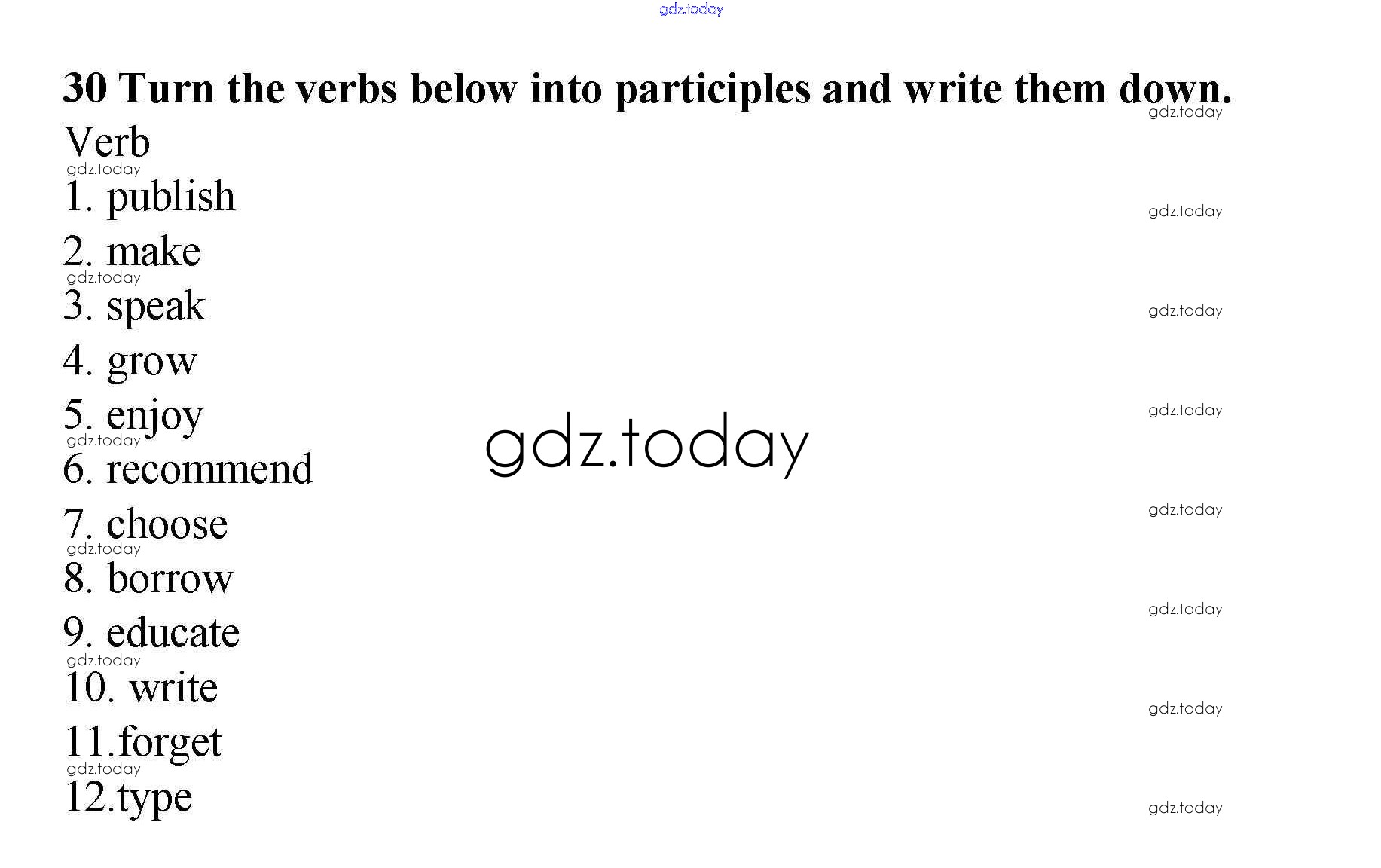 На страницах сайта gdz.today вы найдете учебный и вспомогательный материал, направленный на улучшения знаний школьной программы. ГДЗ - онлайн мир знаний Решение. Unit 2. The Printed Page: Books, Magazines, Newspapers. Pages 30-57 30 Рабочей тетради по Английскому языку для 9 класса Афанасьева, Михеева Дрофа Rainbow 2016