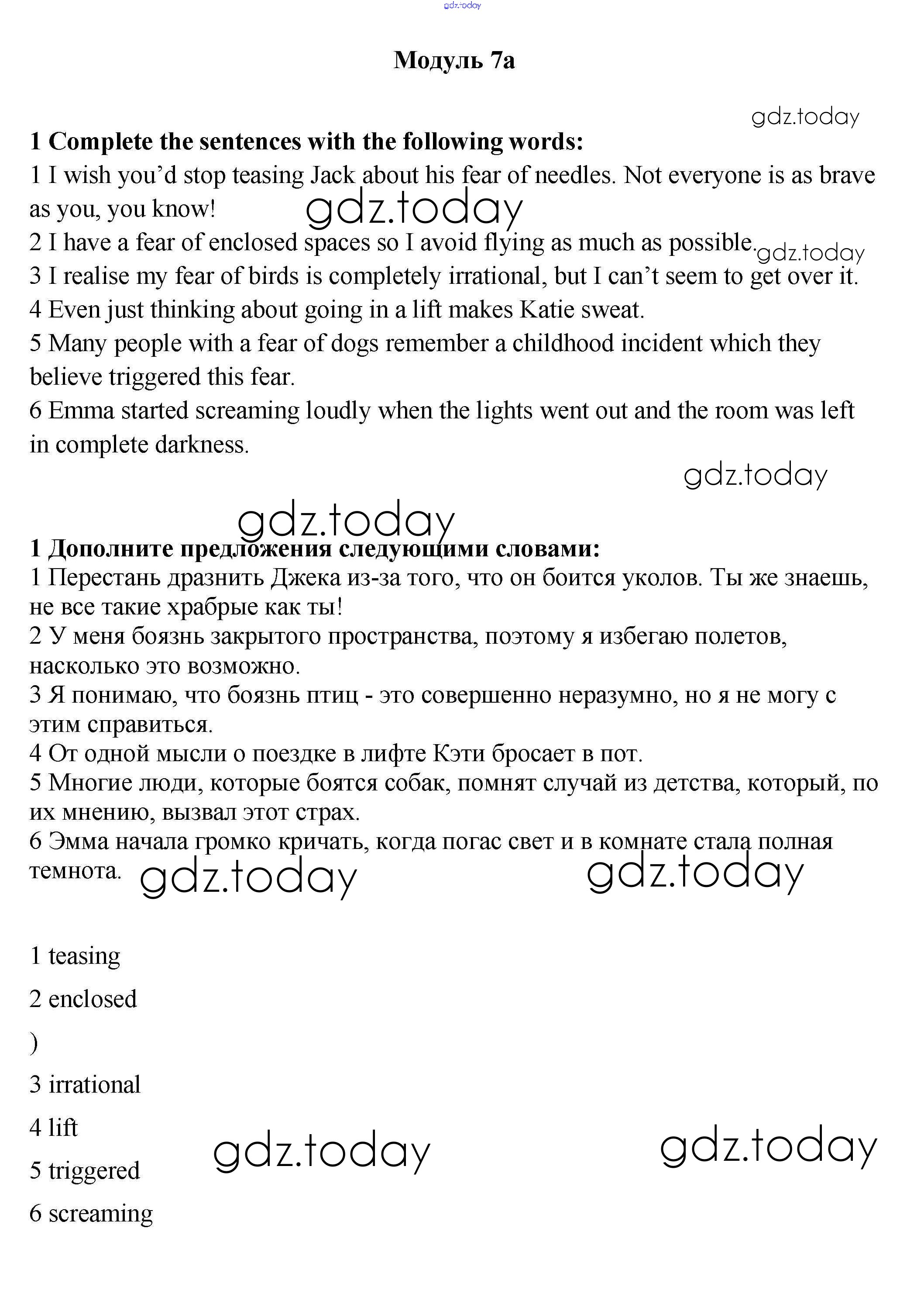 На страницах сайта gdz.today вы найдете учебный и вспомогательный материал, направленный на улучшения знаний школьной программы. ГДЗ - онлайн мир знаний Часть 7a Решение к модулю 7 1 Рабочей тетради по Английскому языку для 9 класса Ваулина, Эванс Просвещение 2010